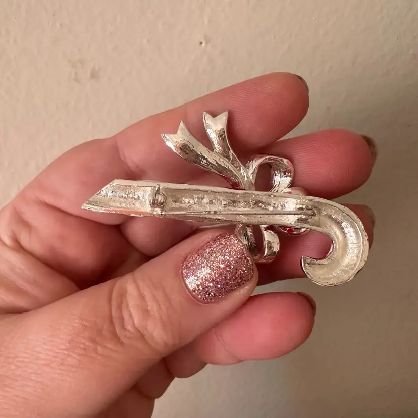 Super cute at almost 3” long and great to add cheer with tiny red rhinestones on the center of the bow. No issues.