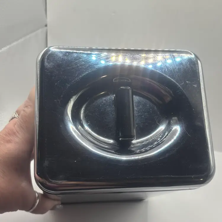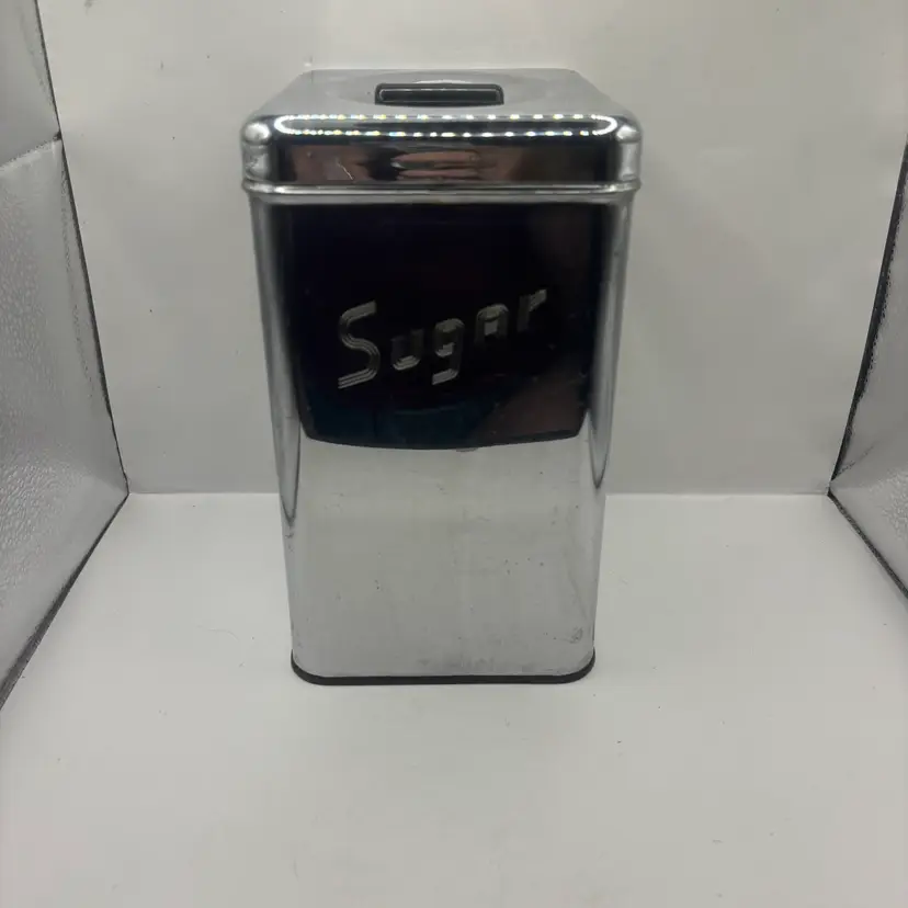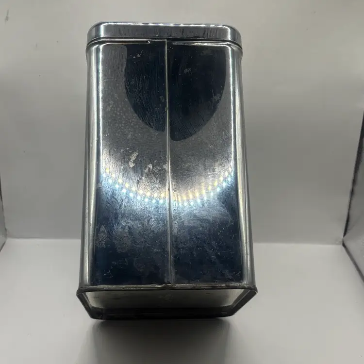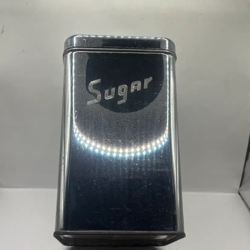 Vintage Canette Sugar Canister Metal Chrome 8.75”X 5” X 6” MCM 1950s Please examine pictures some slight patina