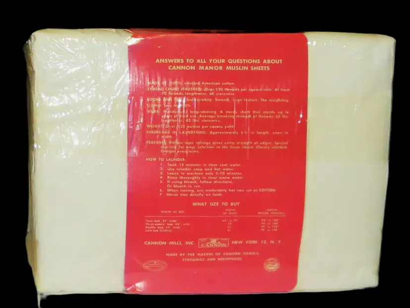 Vintage Cannon Manor muslin sheets size 90 x108 new old stock. Never opened or used.