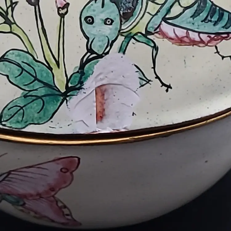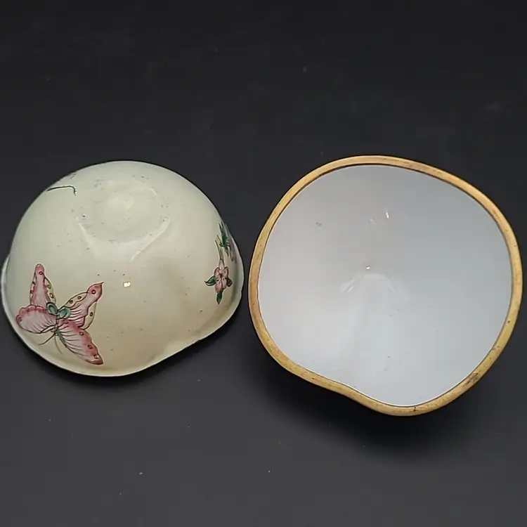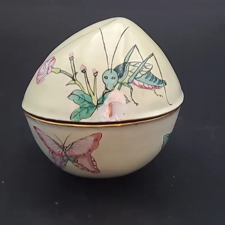 Vintage Canton Enamel On Metal Hand Painted Dragonfly And Crickets Trinket Box
