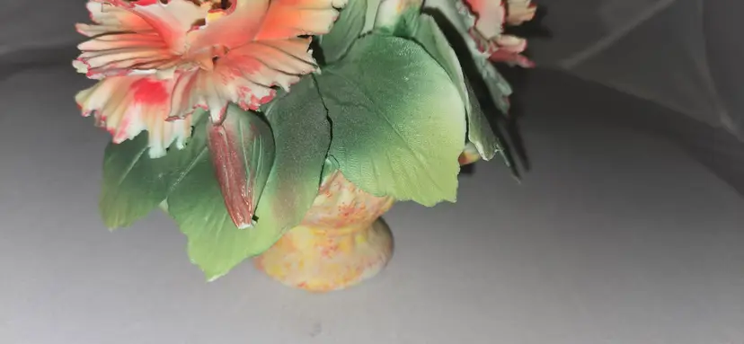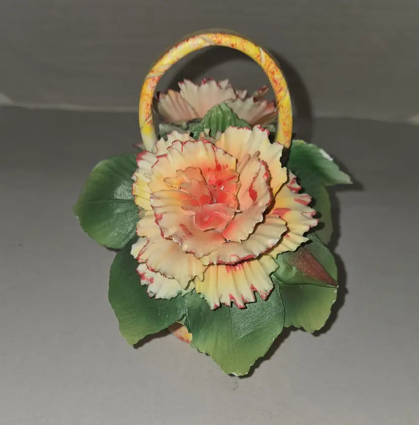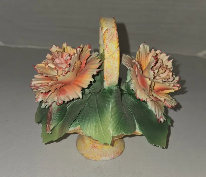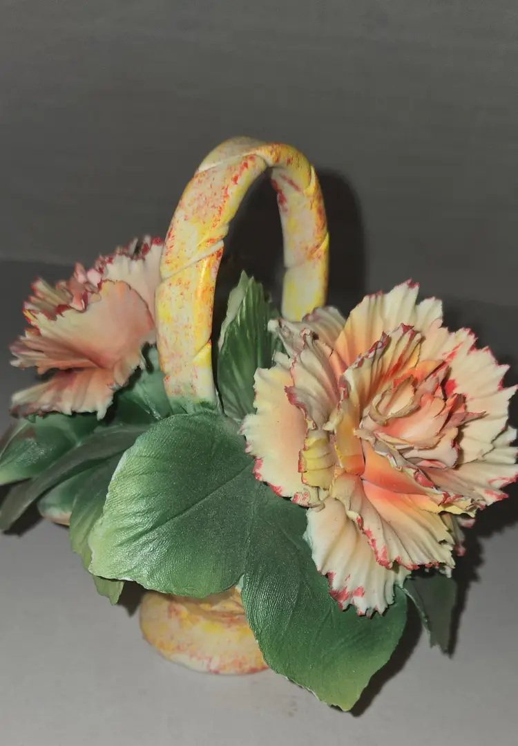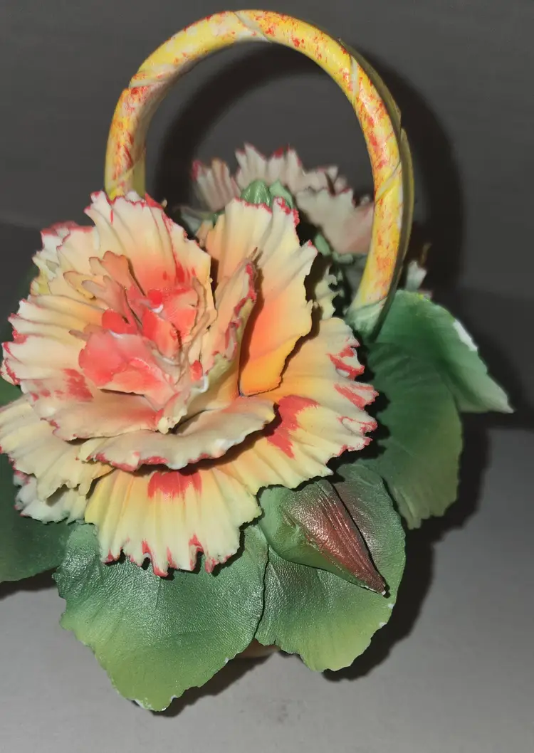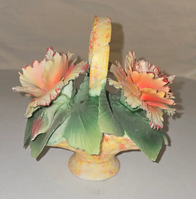 Vintage Capodimonte orange carnation flower basket.Measures 5" tall 5" long.There are some chips.Please see photos.