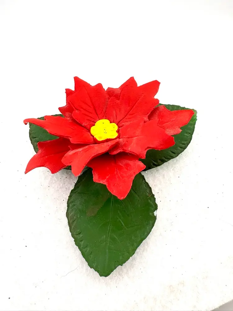 This is a delicate piece of Capodimonte with a stamp on the bottom. It was well loved as there are three pads underneath. There is a chip on one of the leaves but it is very small.