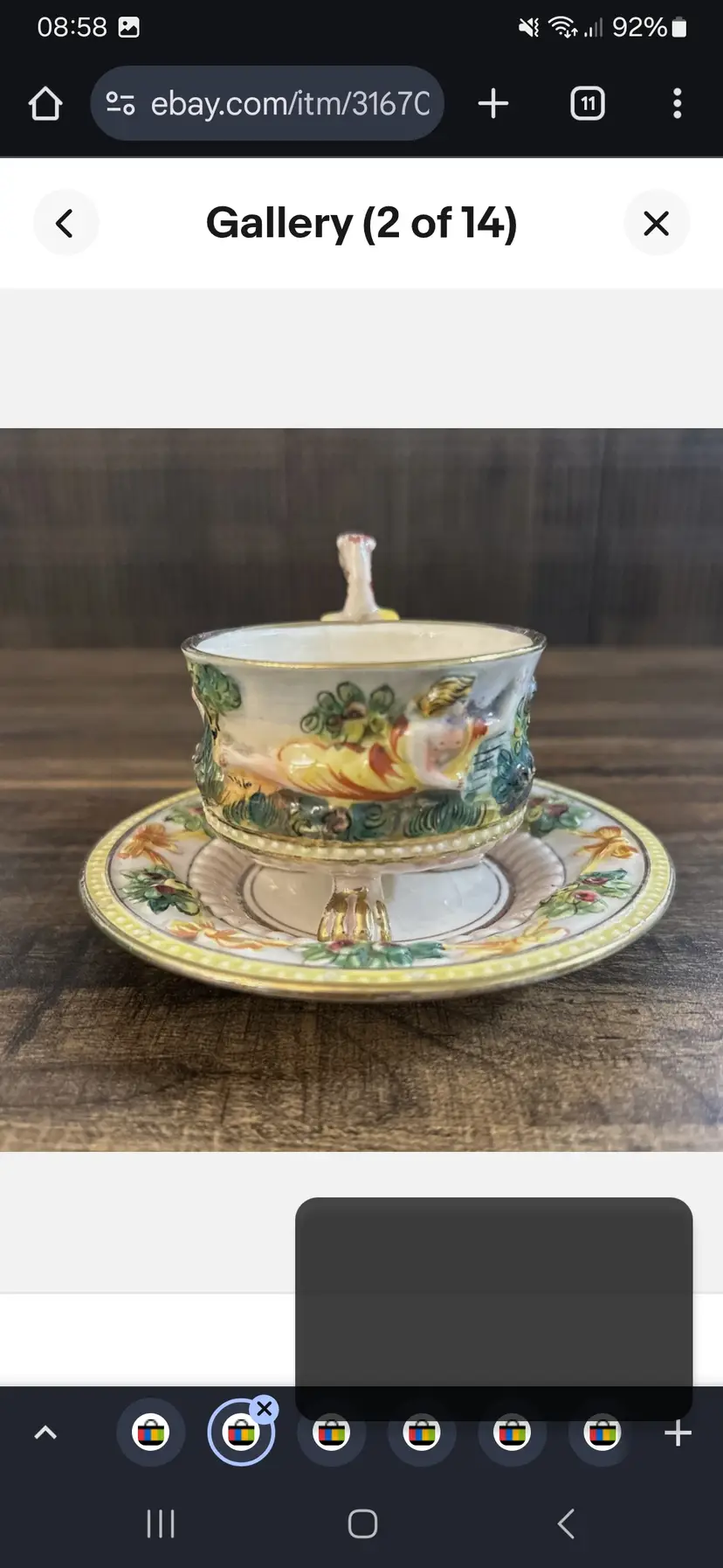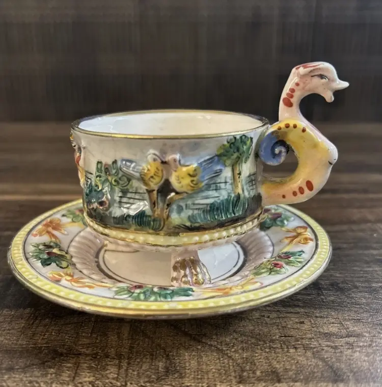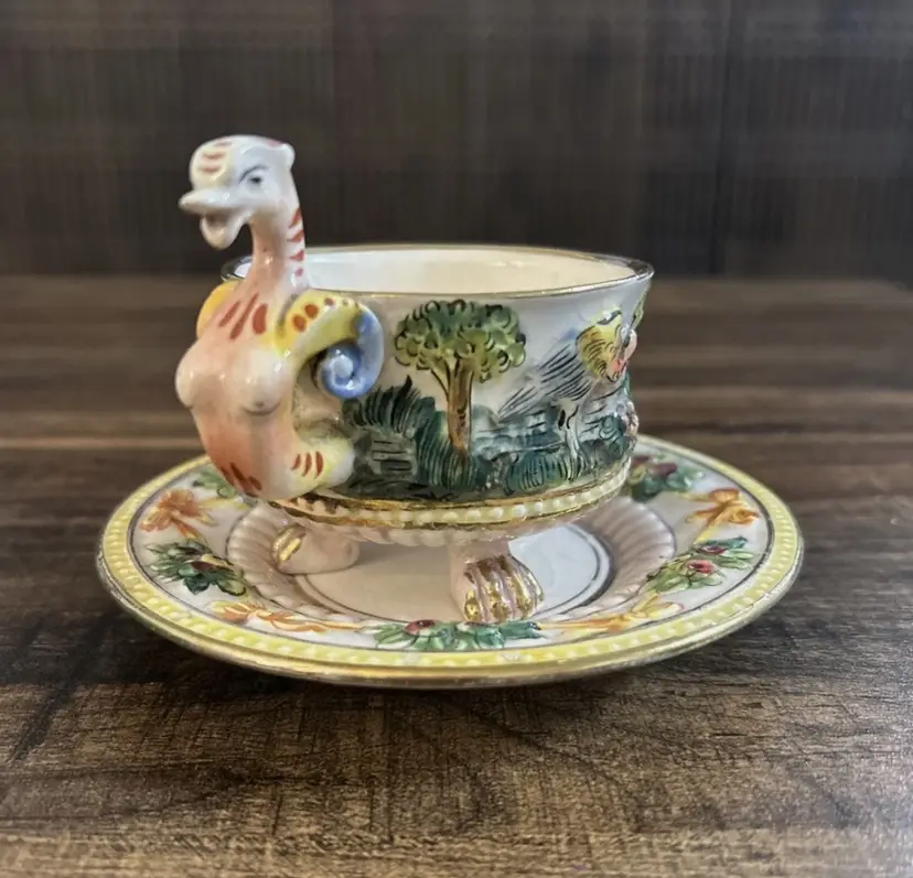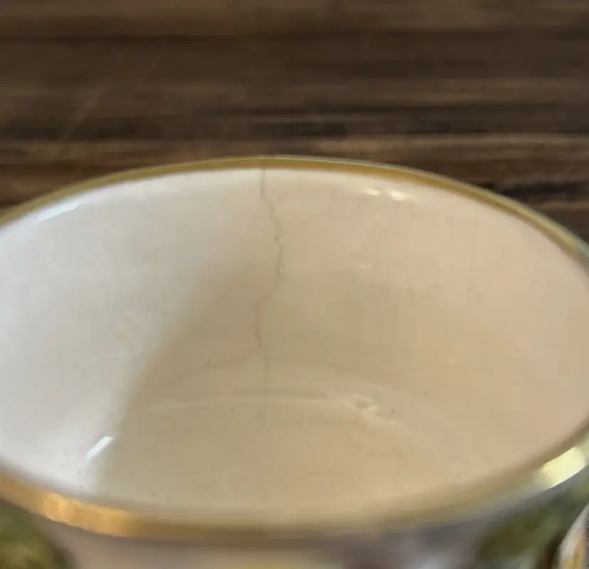 Pre owned, the cup has a crack on one side, there is presence of crazing