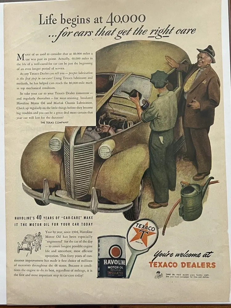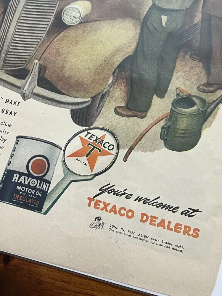 Vintage Car 1940s Texaco Havoline Motor Oil Print Ad 11x14 Mechanic Auto