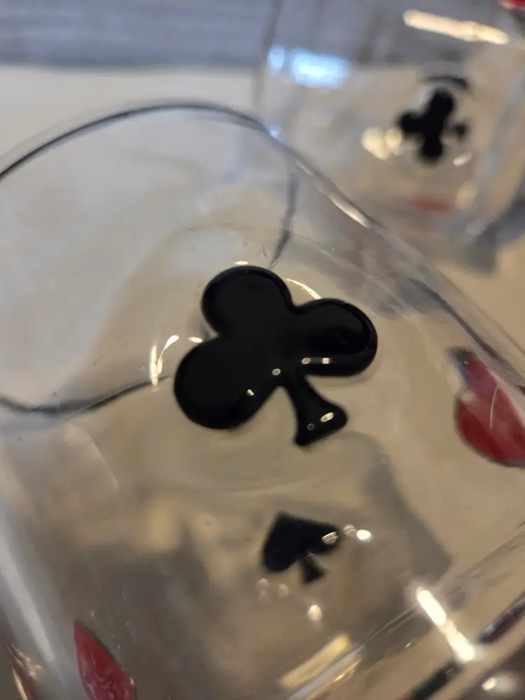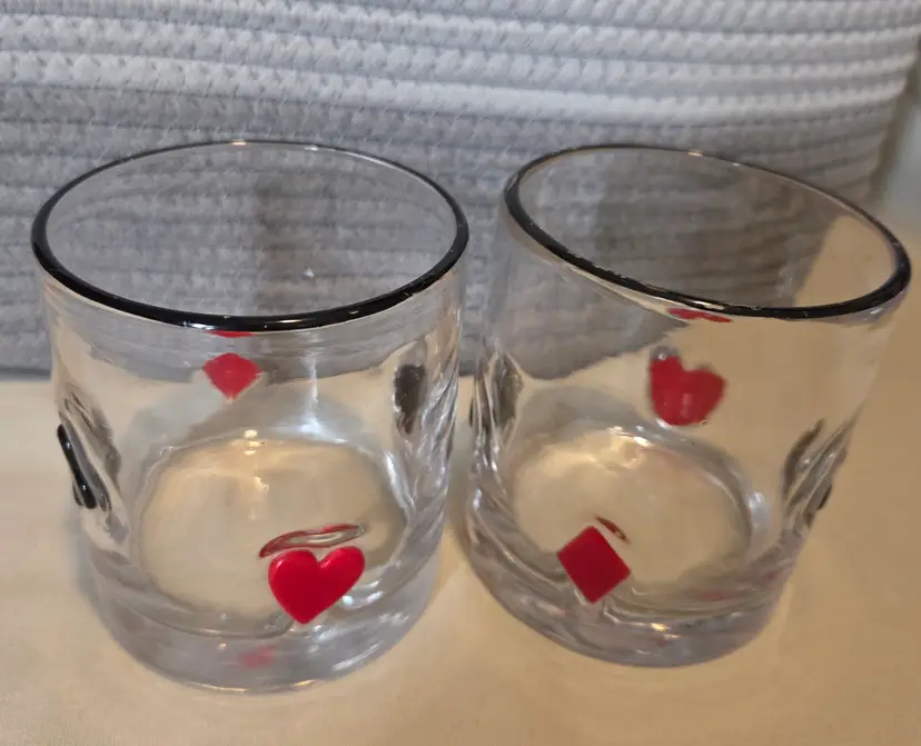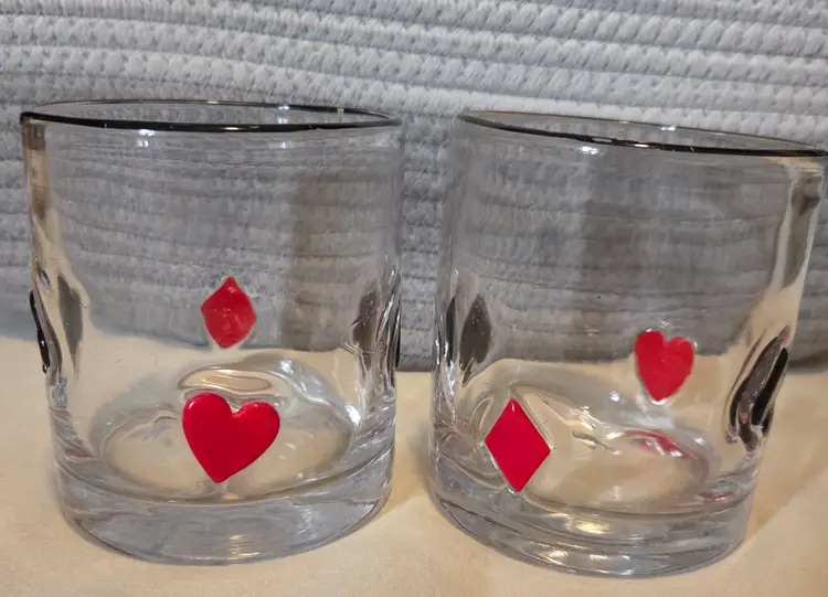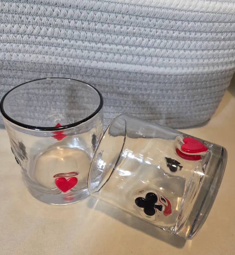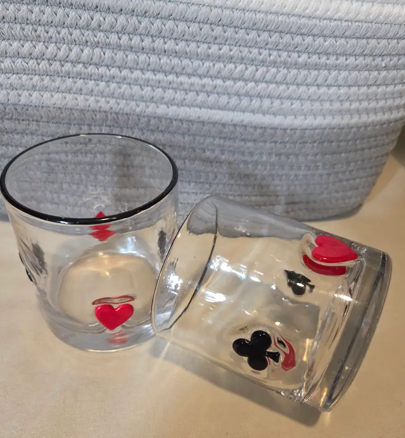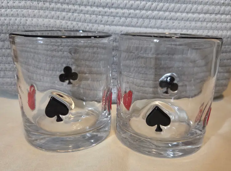 Sip in style with this vintage whiskey glass set featuring classic card suit designs. Perfect for game nights or adding a playful touch to your barware collection.