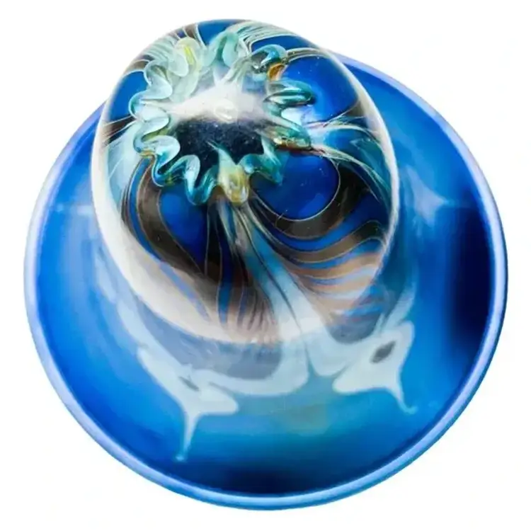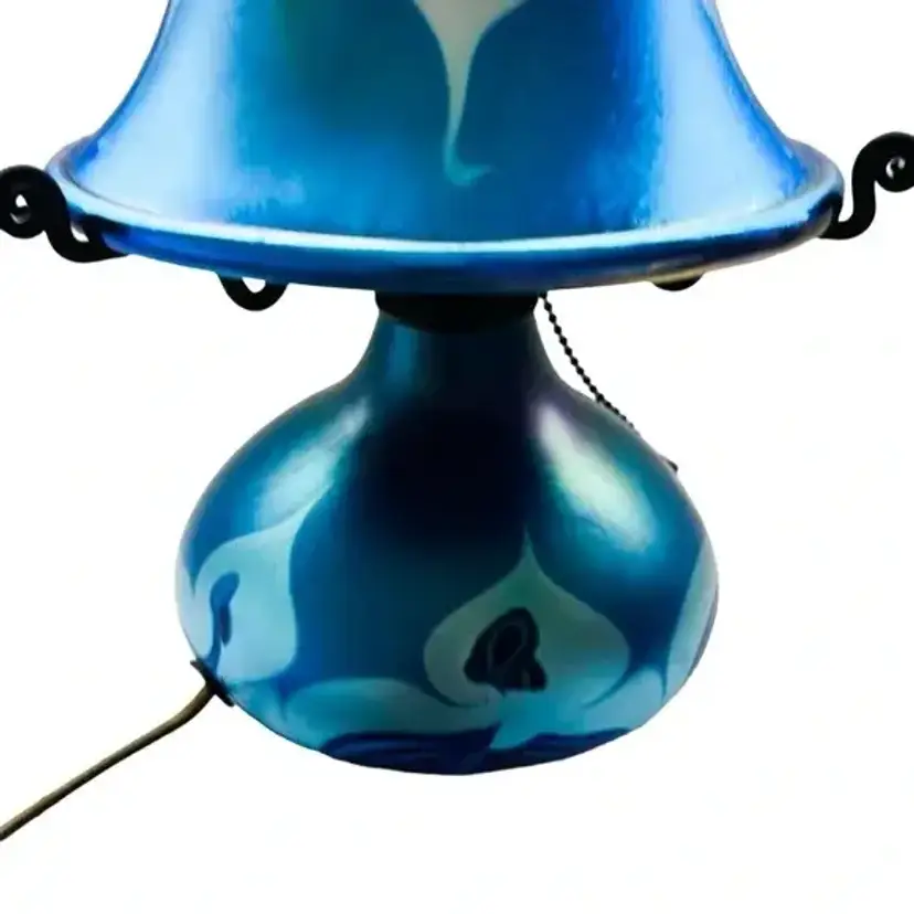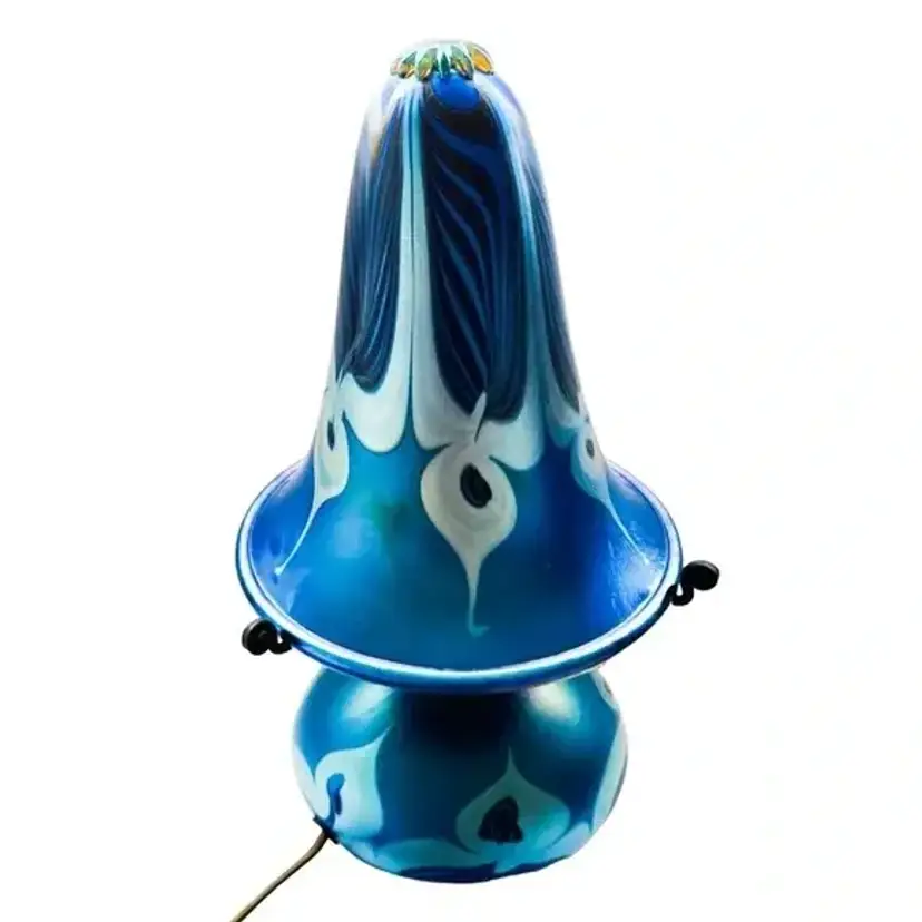 Vintage Carl Radke Art Glass Bell Shade Blue Signed Table Lamp