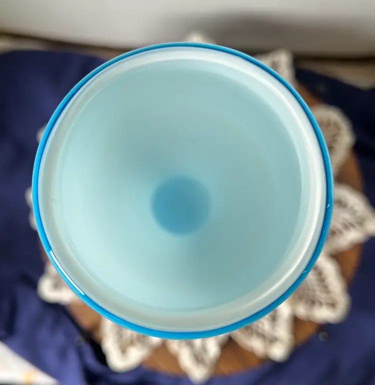 14.5” tall. VGC with a few black scuff marks around the top. No chips or cracks.
