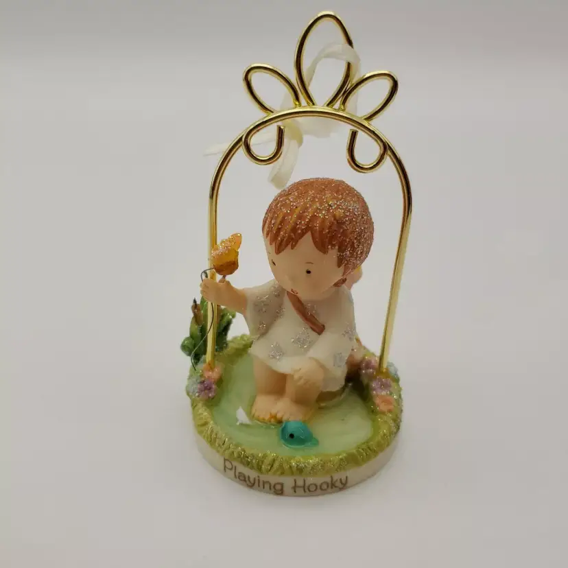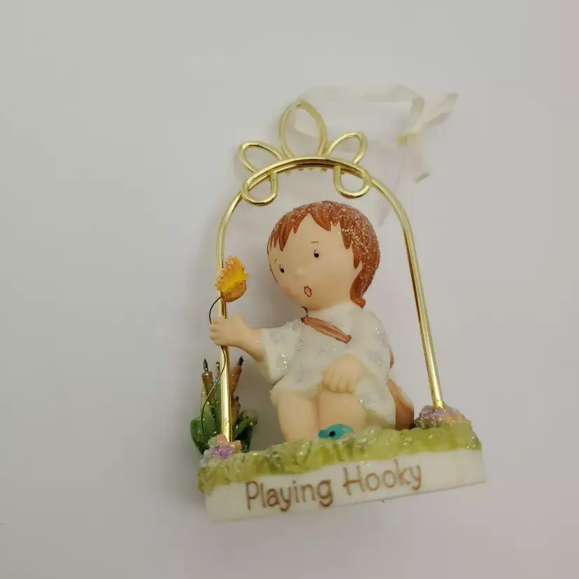 -Brand: Carlton Cards -Item: Stardusters Playing Hooky Ornament -Measurements: Measures Appx 4" x 2" x 2" -Condition: Excellent Condition-Opened But Never Displayed-Box Has Some Minor Wear-Please See All Photos -Accents/Features: Angel Under a Metal Arch Playing With a Butterfly-"Playing Hooky"-Accented With Glitter-Very Cute! -Year: 2004 -Material: Resin -Color: Multi-Color-Pastels