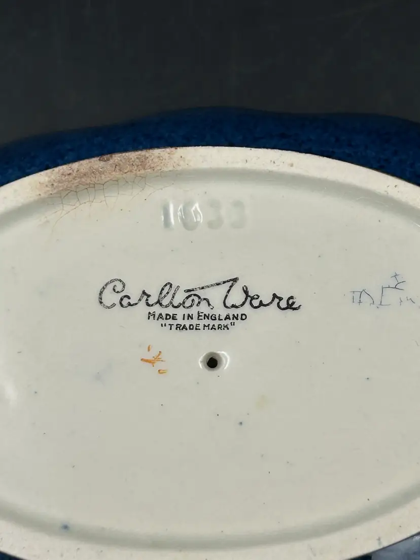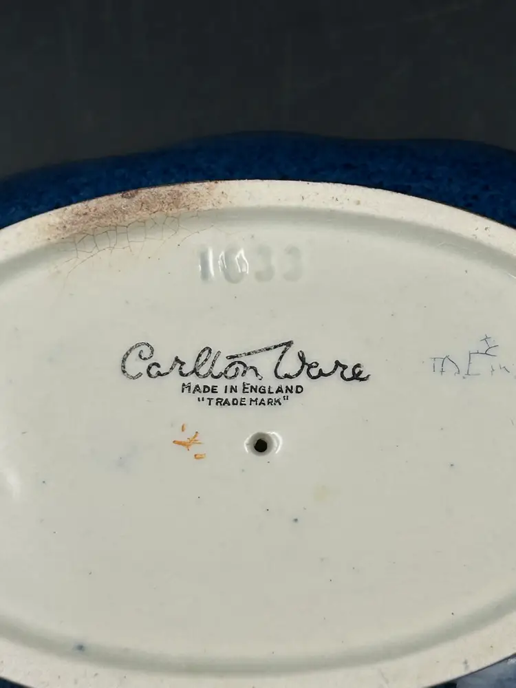 Has a small chip on underside of handle, not visible from top, see pictures. 6.75 L.X 4.25x 1.75 H.