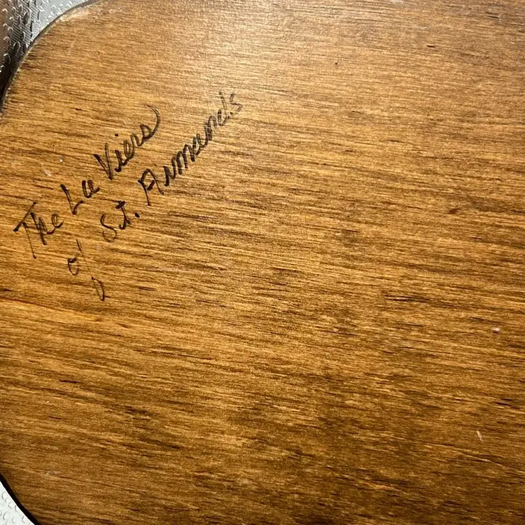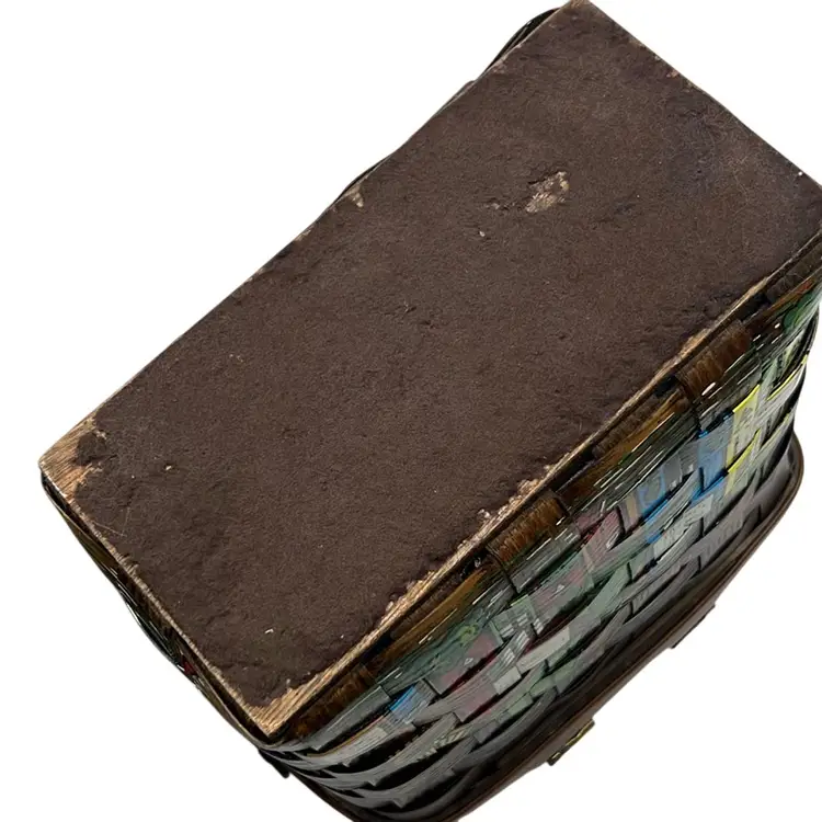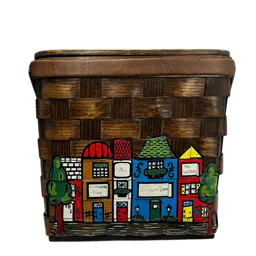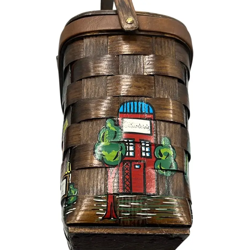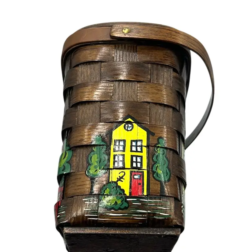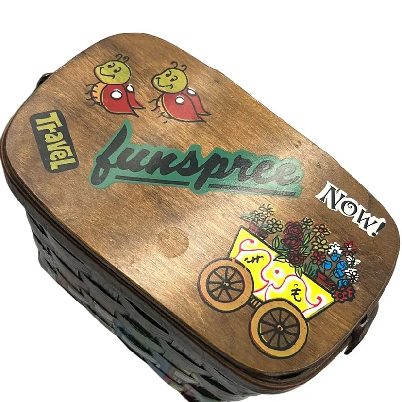 Great hand painting. Minimal vintage wear. Red flowered quilted interior. Very clean.