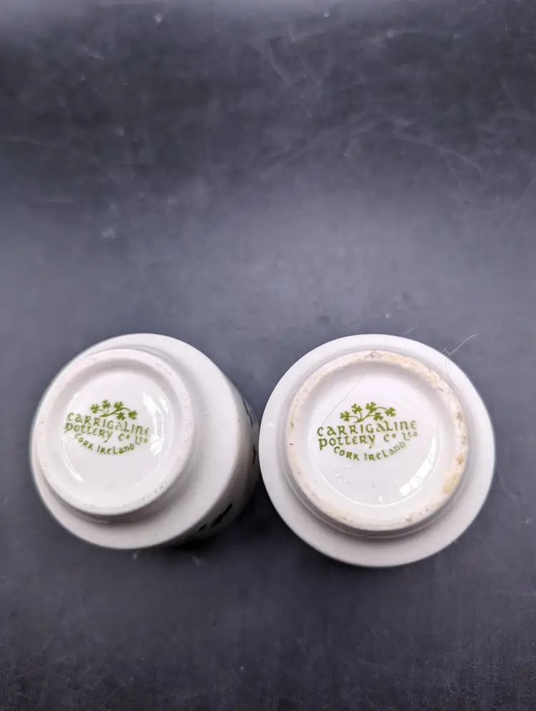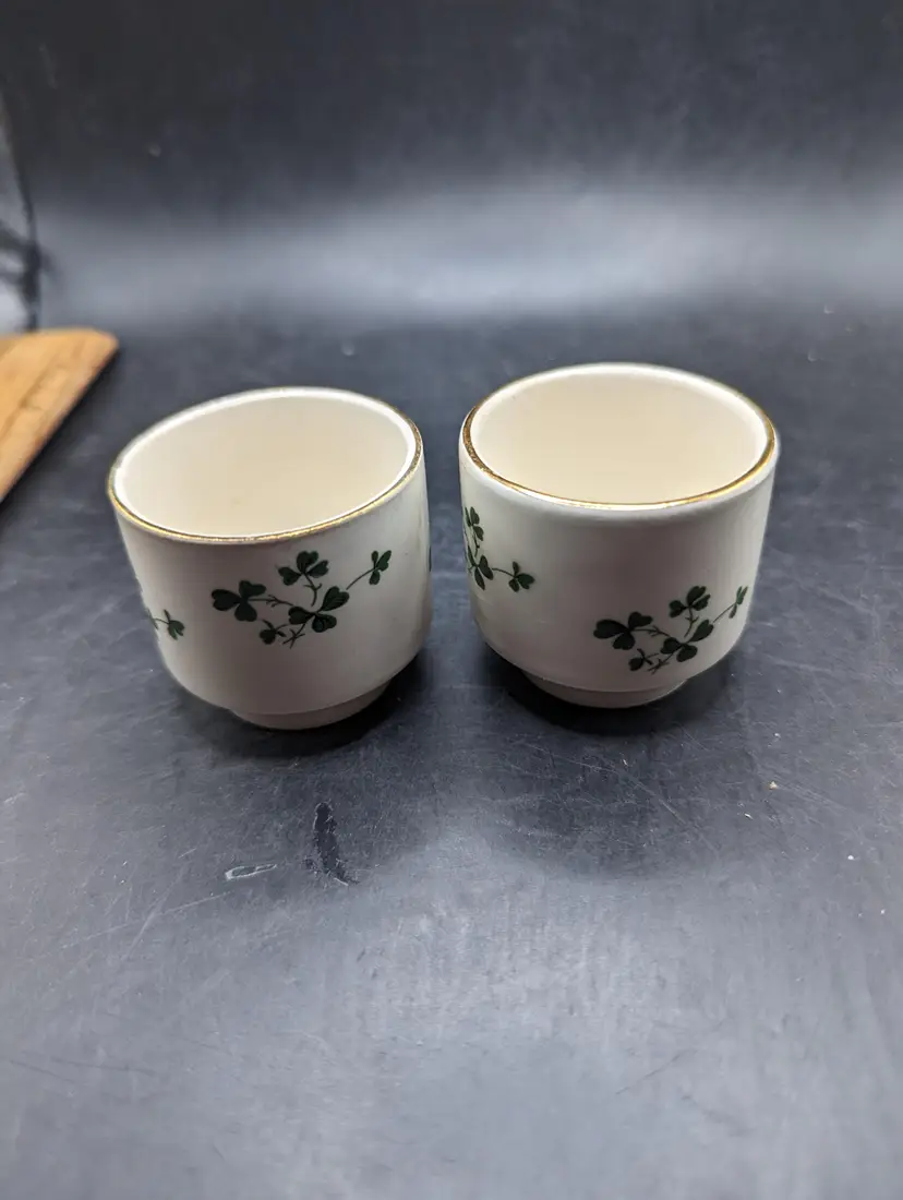 This is a lovely Vintage Carrigaline Pottery Ireland Shot Cups Shamrock Made In Ireland Set Of 2. These are just in Time for St. Patty's day. Add a touch of luck to your tea time with these charming vintage ceramic cups featuring a delicate shamrock design. Perfect for collectors or as a unique gift. Please see all pictures for condition.
