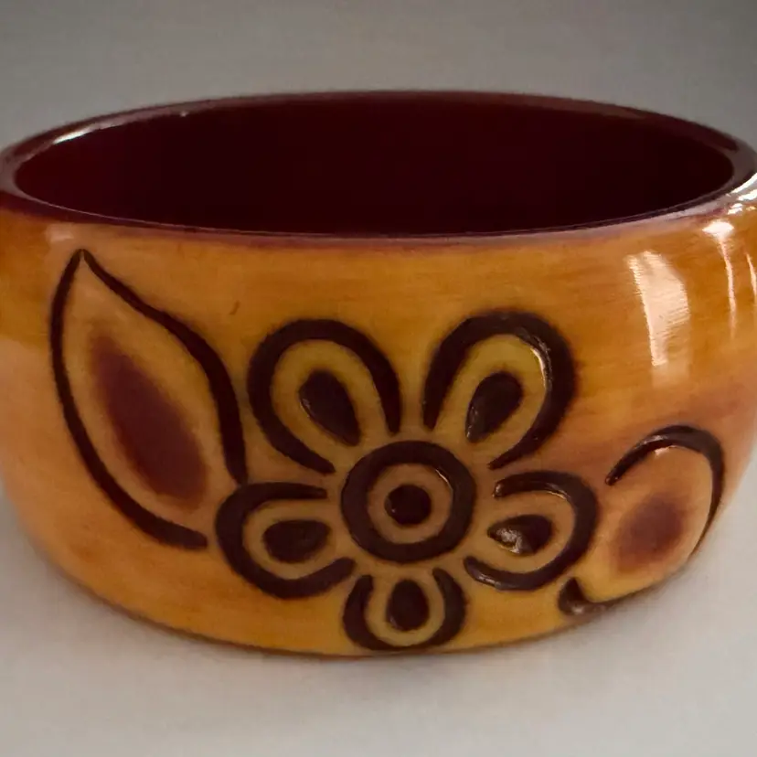 Vintage Carved Flower Bangle 2 3/4” (no seam)