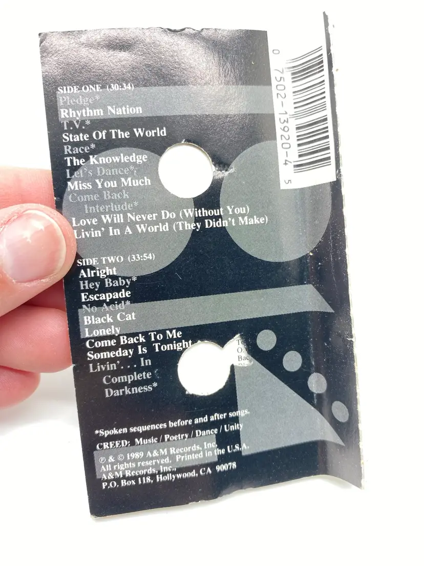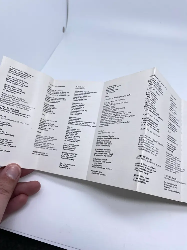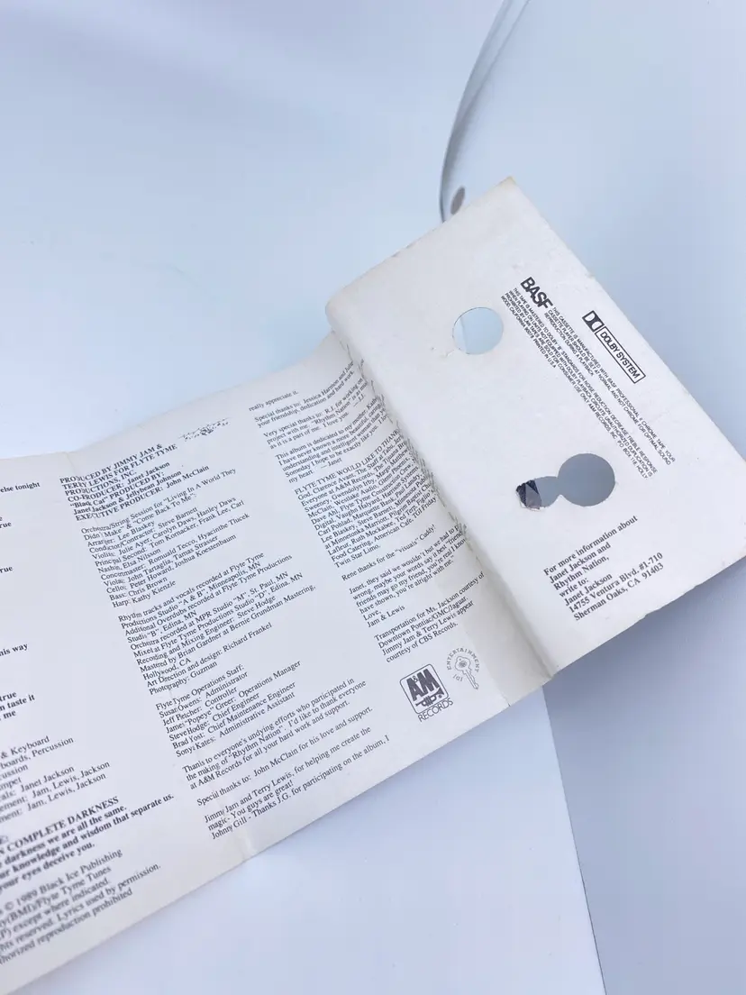 1989 Janet Jackson cassette tape. The case has a small bent spot but doesn’t affect the function of the tape. I am unable to test the tape but the tape appears in good shape.