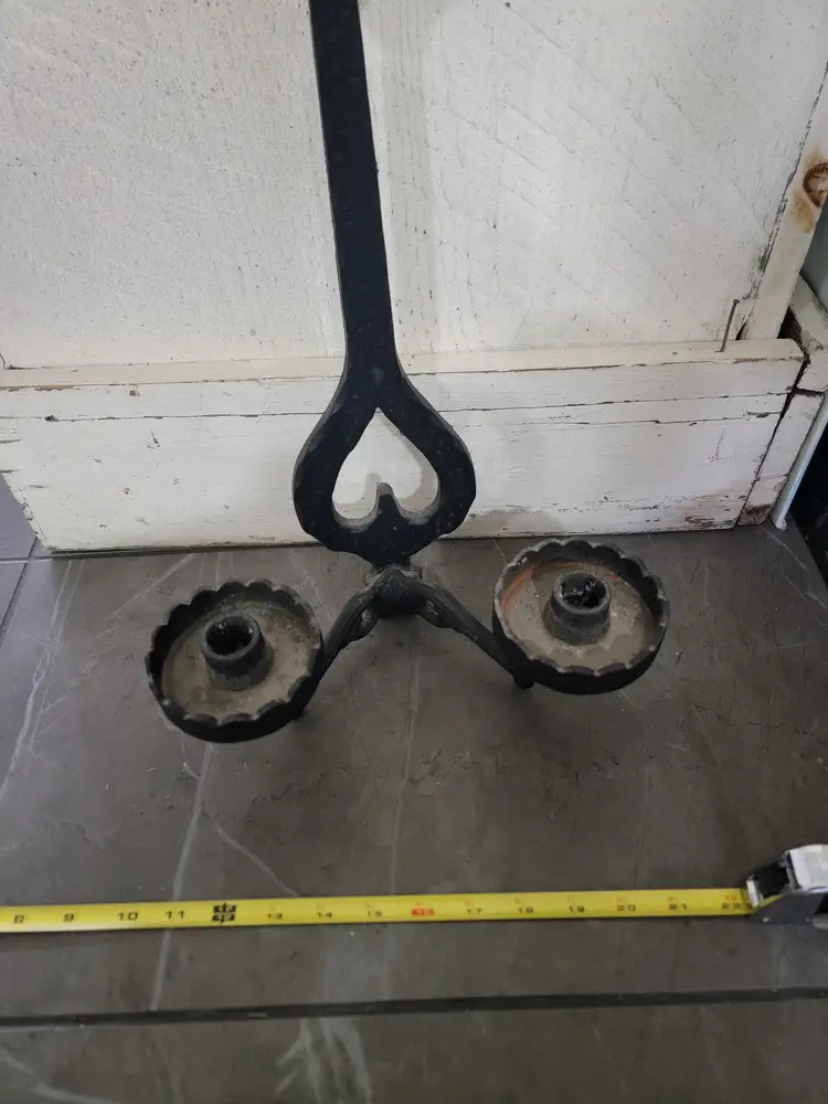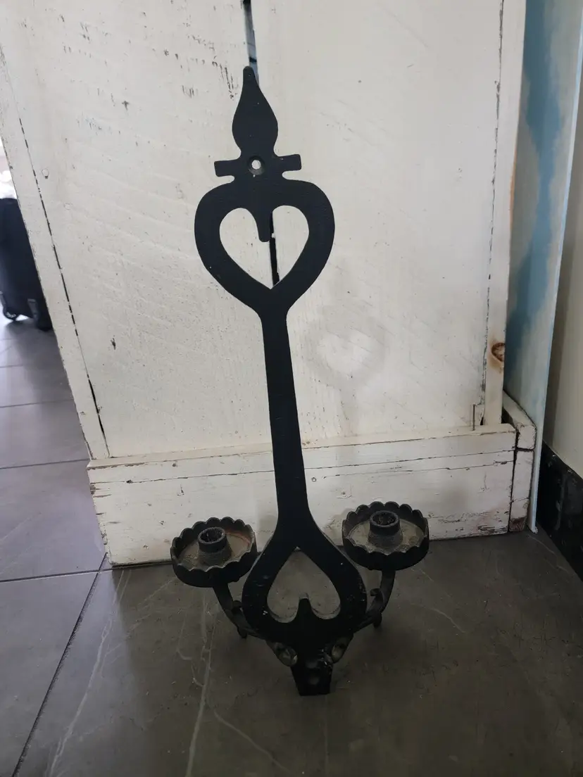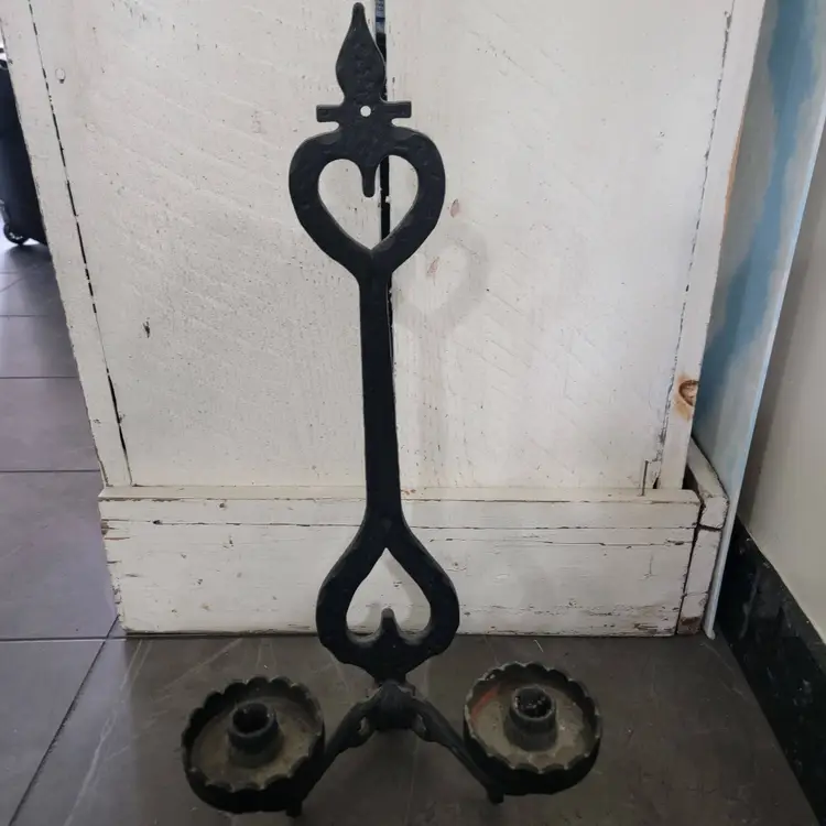 Very large and heavy piece. Could use a good cleaning. Can be hung either on the wall or actually stands on the floor.
