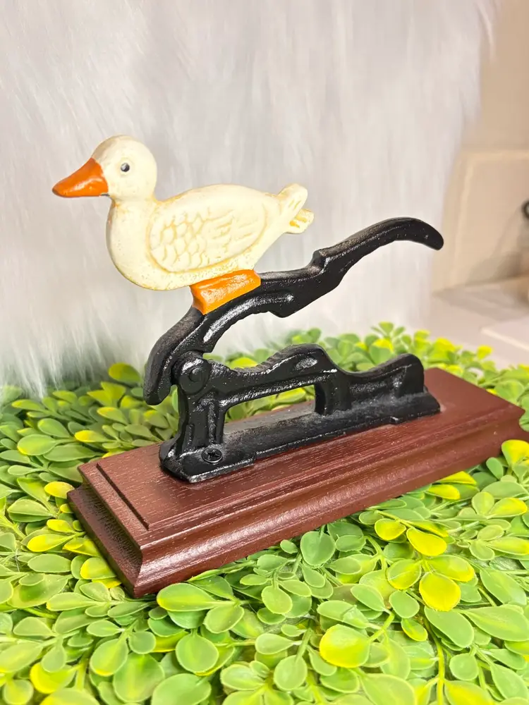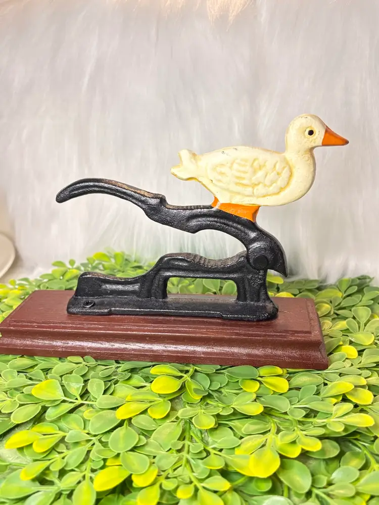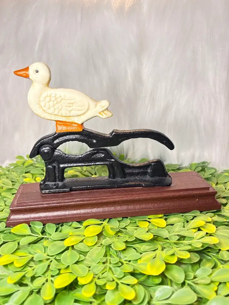 Vintage Cast Iron Duck Nutcracker On Wooden 7.5 inch Base