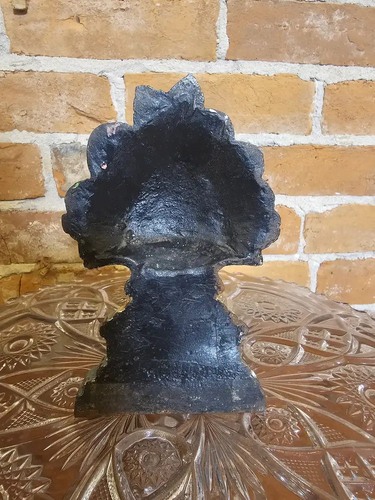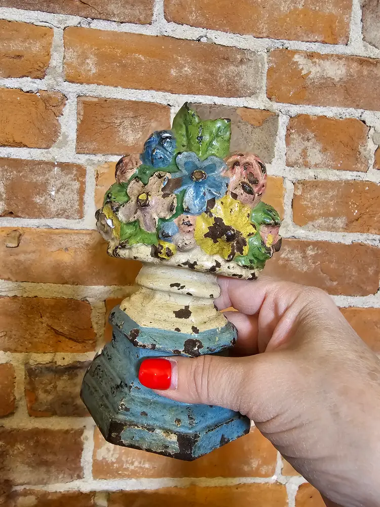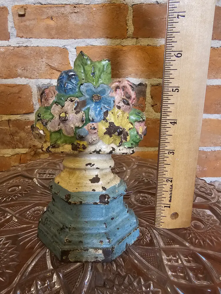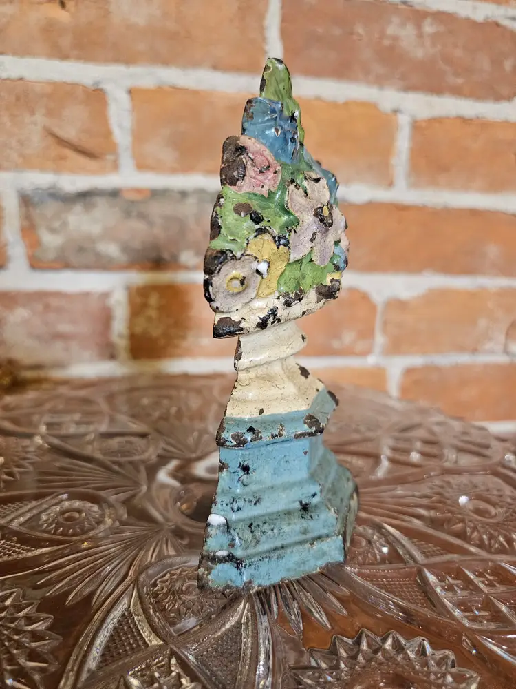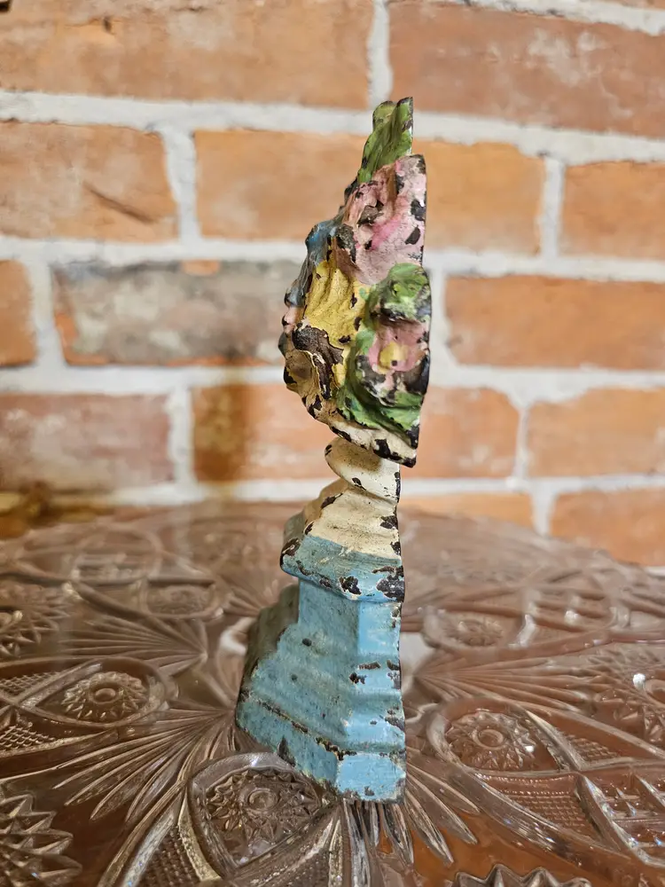 6" tall. Paint loss as shown in photos. Original paint shows natural age-related wear and chippy patina that adds to its vintage character