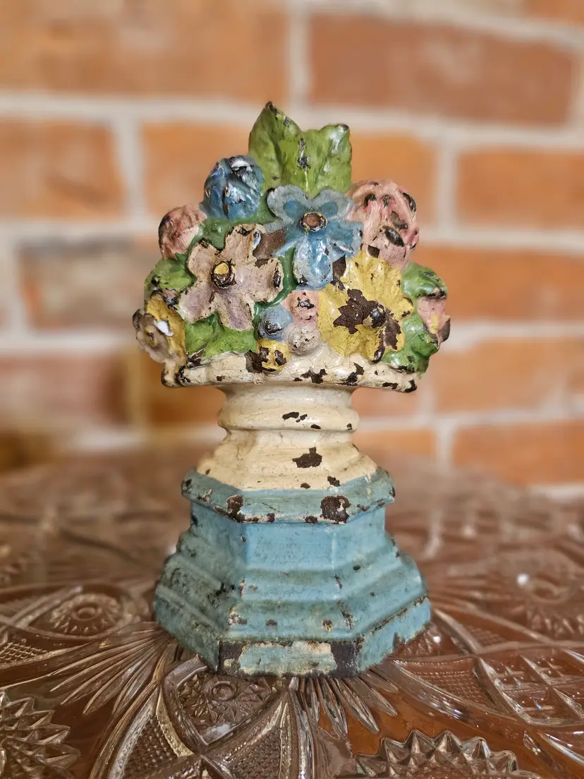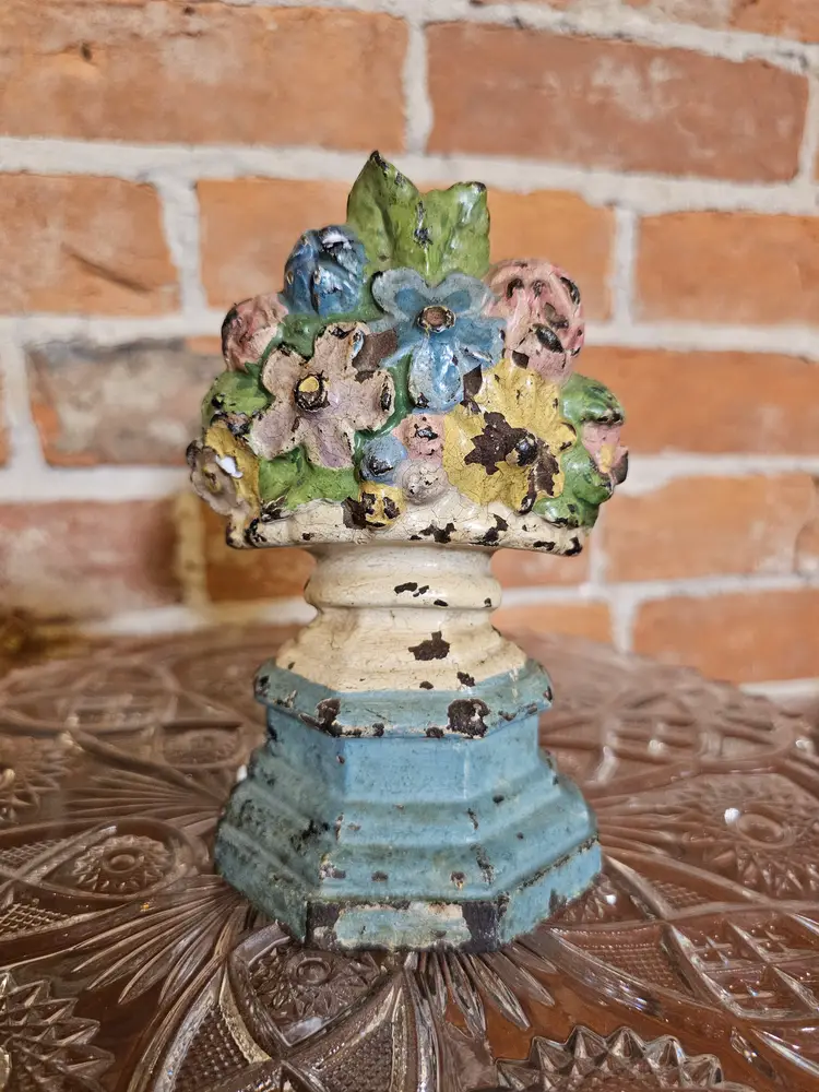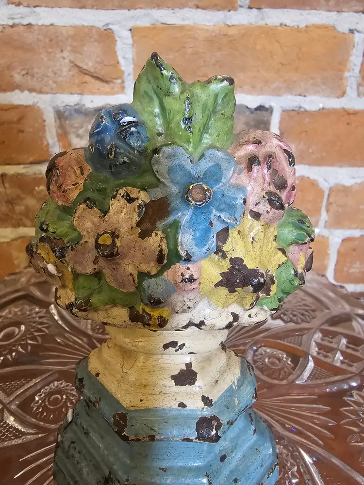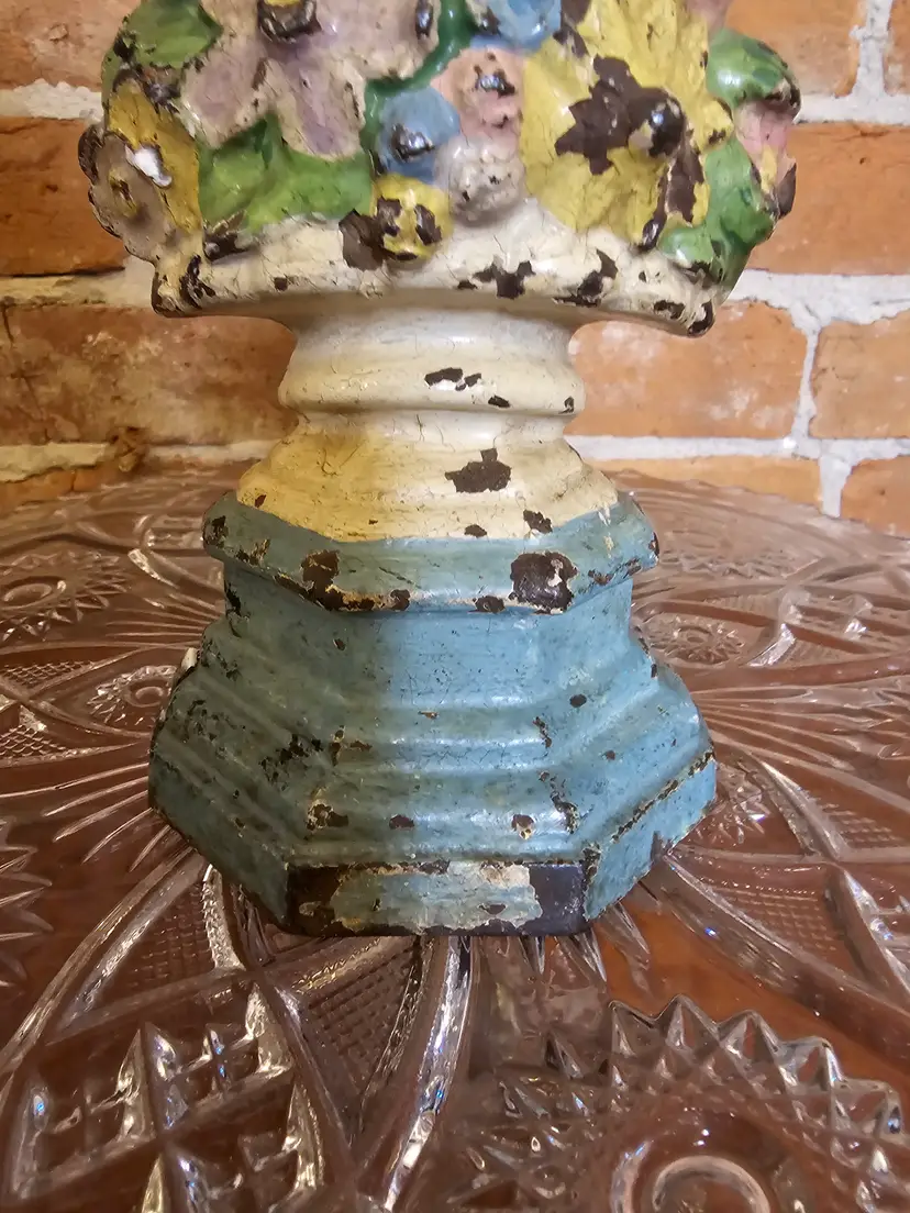 6" tall. Paint loss as shown in photos. Original paint shows natural age-related wear and chippy patina that adds to its vintage character