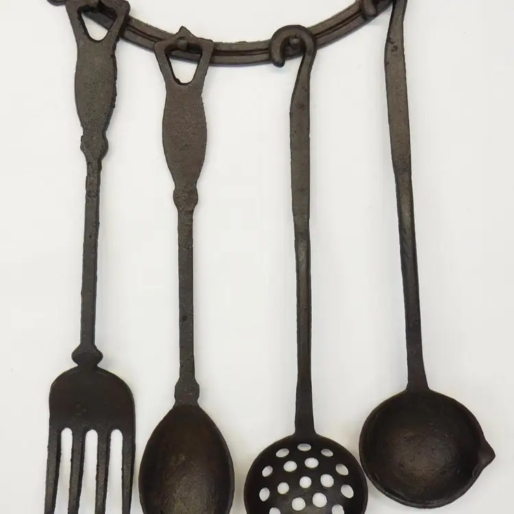 Vintage Cast Iron Hanging Kitchen Utensils, Decorative Early American, Cast Iron Cooking Tools, Farmhouse Display, Country Kitchen Decor, Black Cast Iron