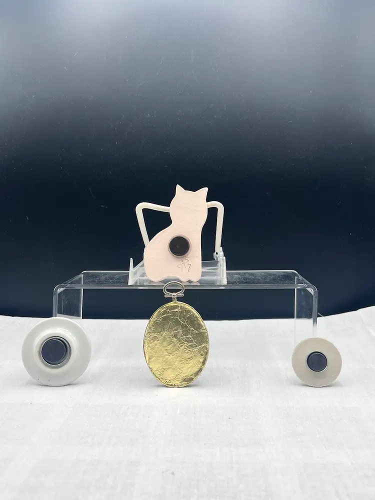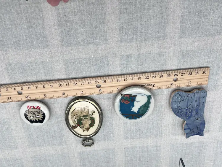 One handmade blue ceramic cat magnet signed on back, once ceramic magnet with