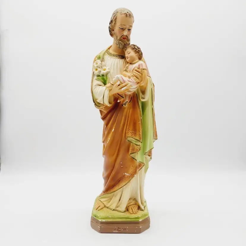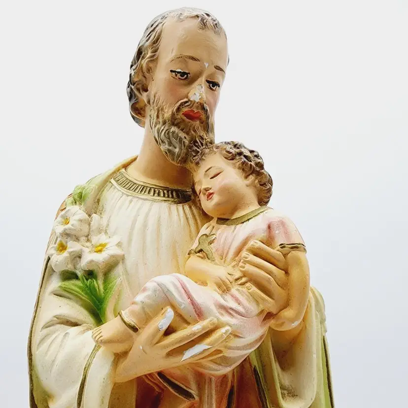 Vintage Catholic Plaster St Joseph Statue 17” Chalkware Baby Jesus
