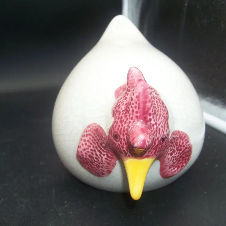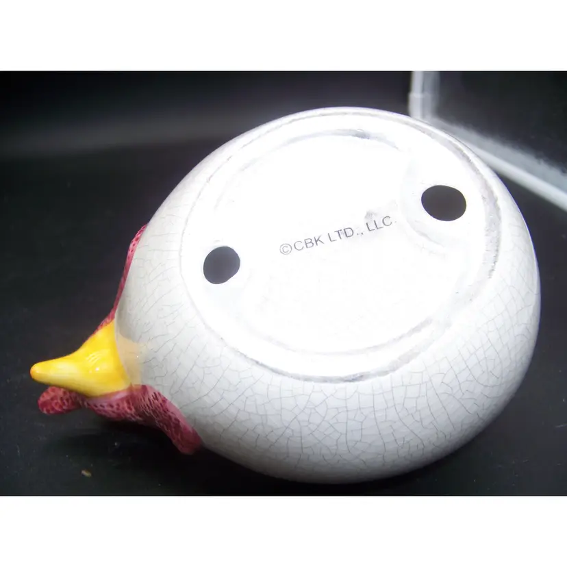 Vintage CBK LTD ceramic crackle glazed pecking chicken. Lovely lady that has a cream crackle glaze on her body with red speckled comb and wattle with a yellow beak. She is 5" tall at the tip of her tail and from the tip of her comb to her butt, she is 6.25" long. She is 4" wide. No chips or cracks.
