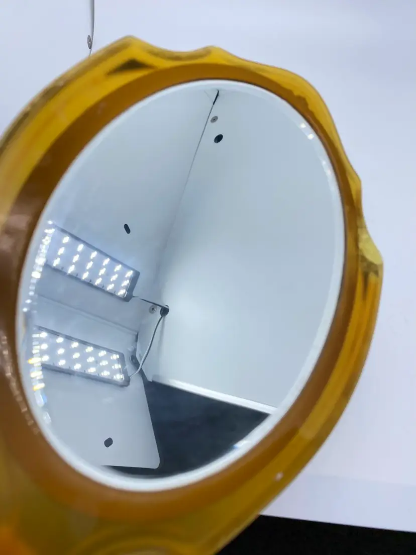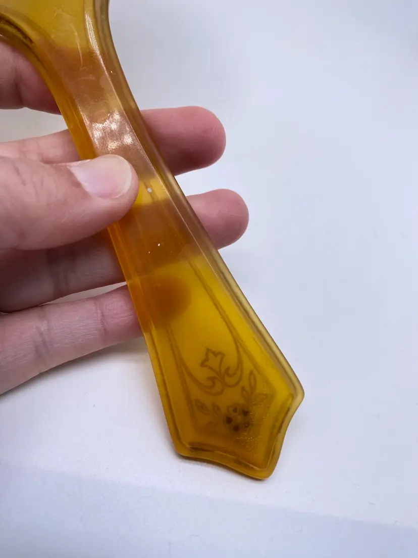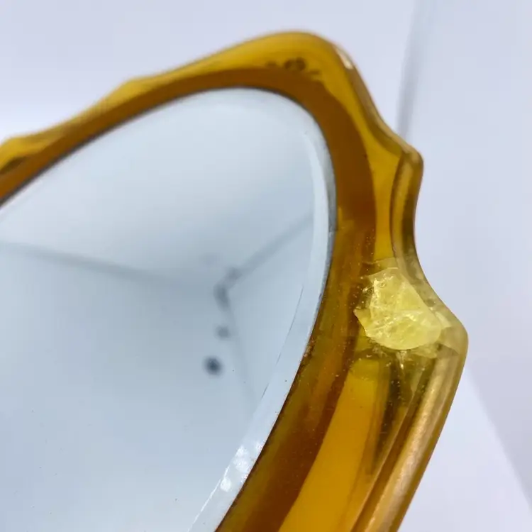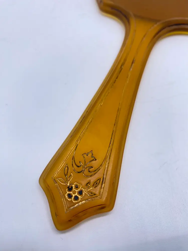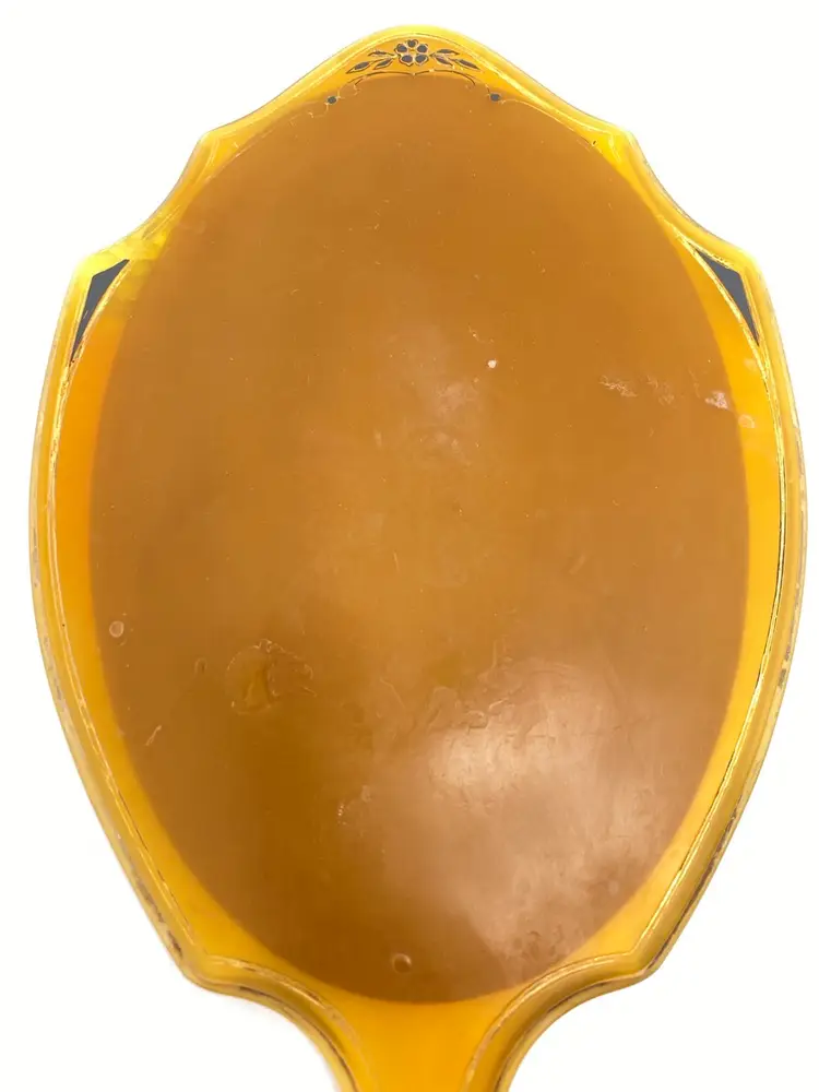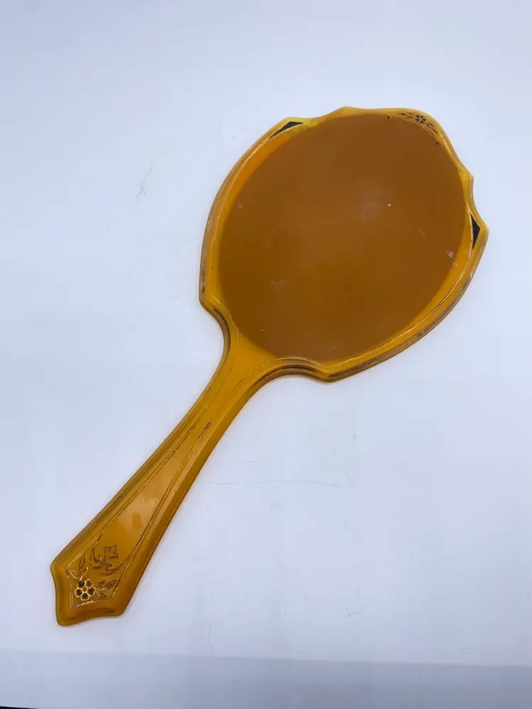 Vintage hand mirror. Has a small bruise on the top. See photos. Nice details on edging.
