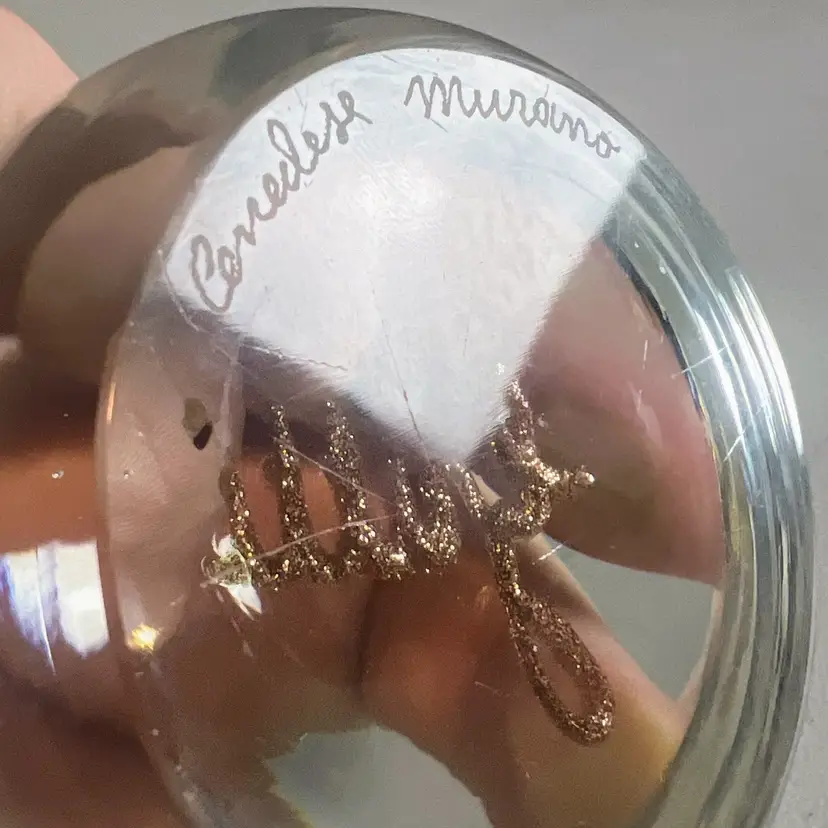 Here We Have a Vintage Cenedese Murano Glass Paperweight Signed Gold Flakes Gritti