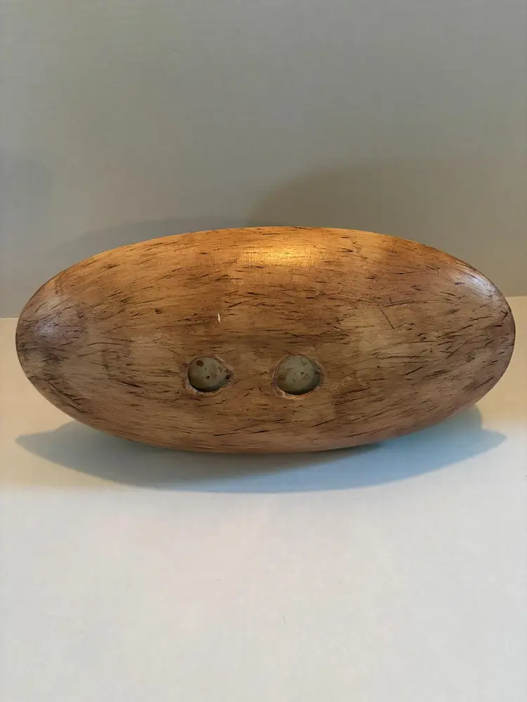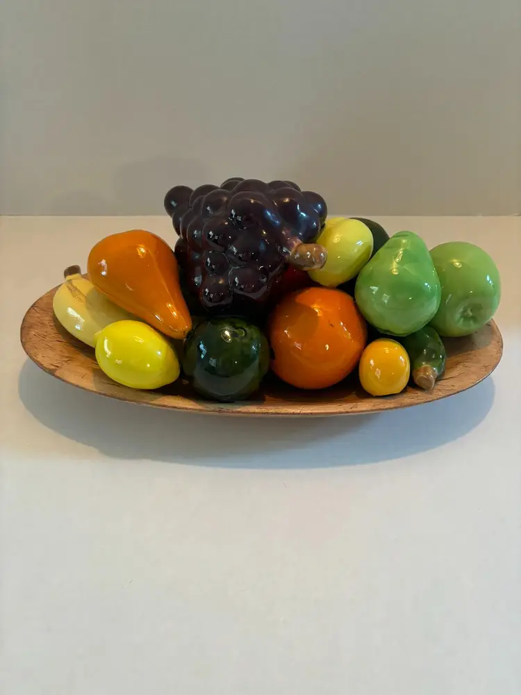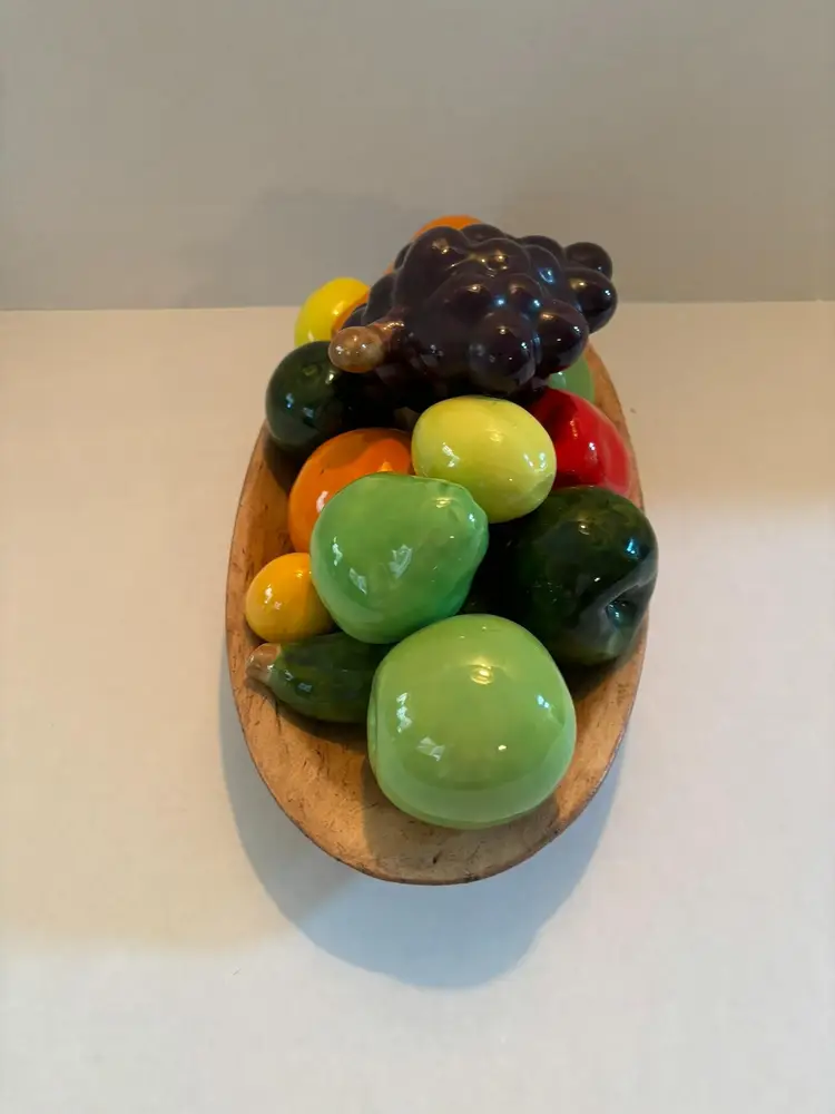 This is a vintage centerpiece that adorned every American table from the 1950s on. The fruit retain their vibrant colors and would make an excellent to any retro style kitchen design. Measures 14in long X 7in wide X 6 1/2in tall