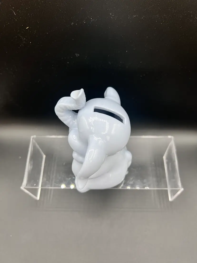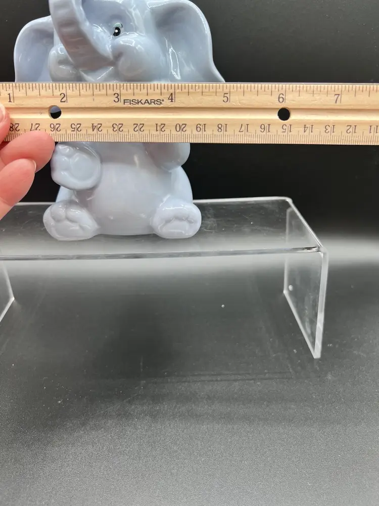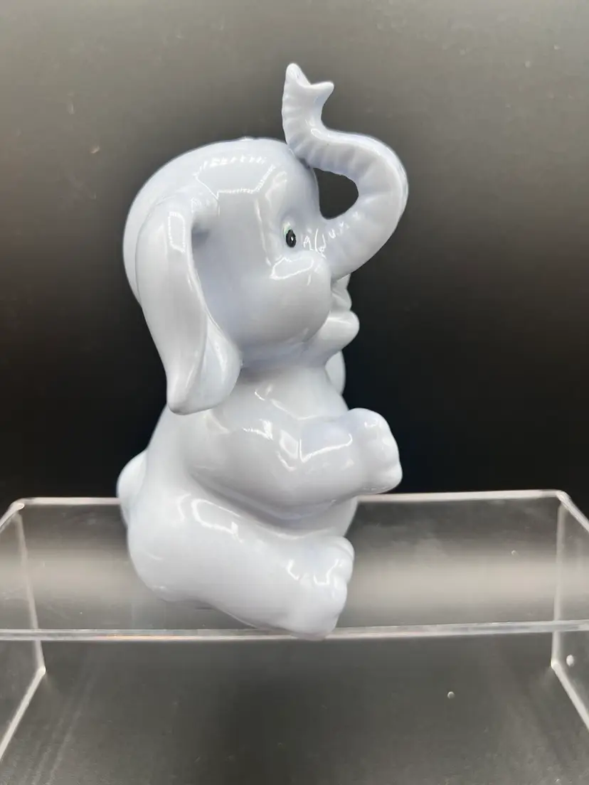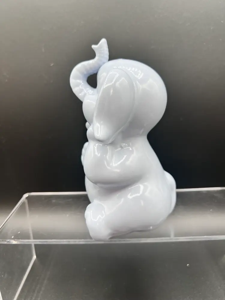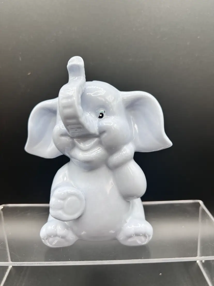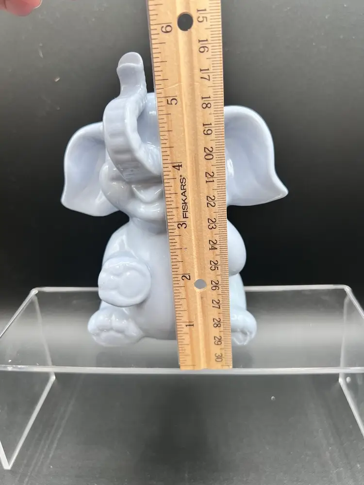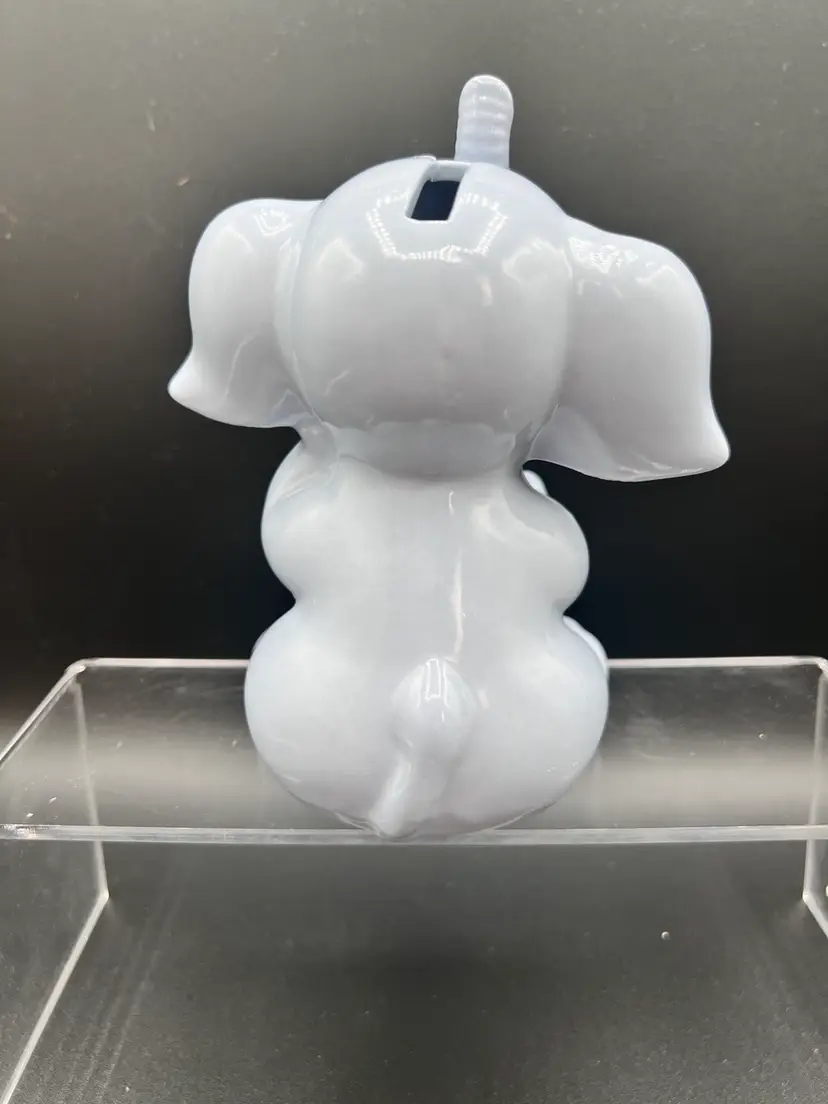 Adorable vintage ceramic elephant bank in a light blue glaze 6" tall x 5" wide, in excellent condition no chips, cracks or crazing It is not marked - and it is missing its stopper