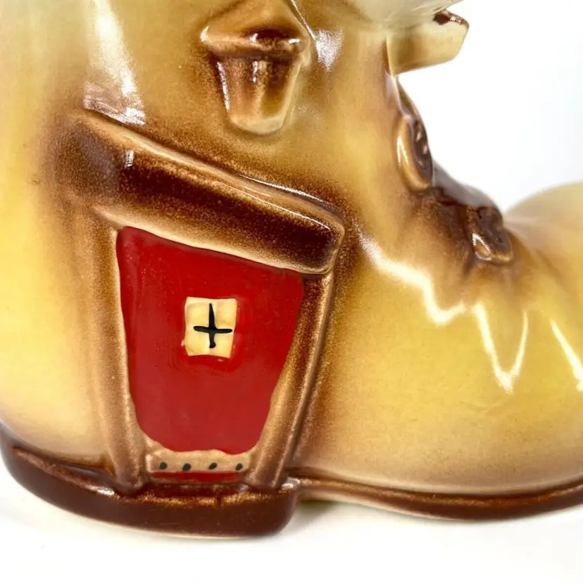 This item is in very good vintage condition. No chips or cracks. Some mild crazing, mostly on the inside of the boot. See images for details. Measures 6" tall by 6 1/2" long by 4" wide. Weighs 1lb 1oz.