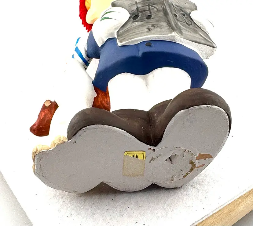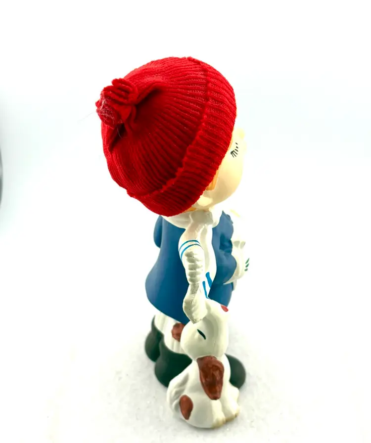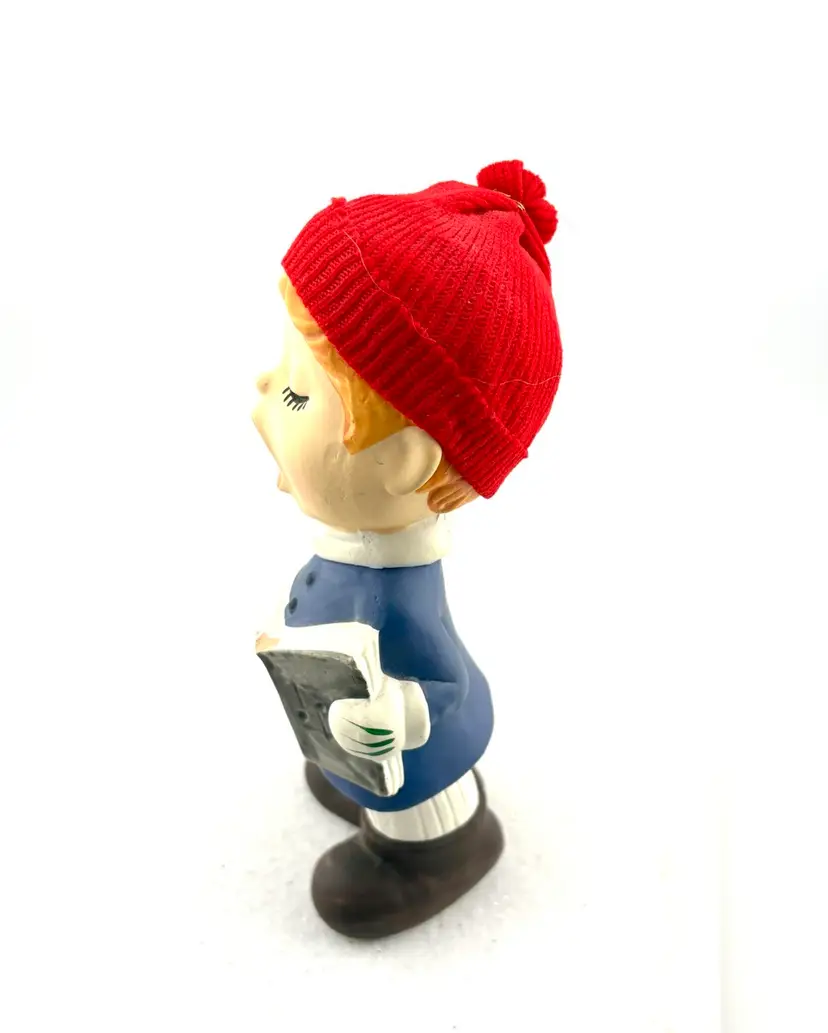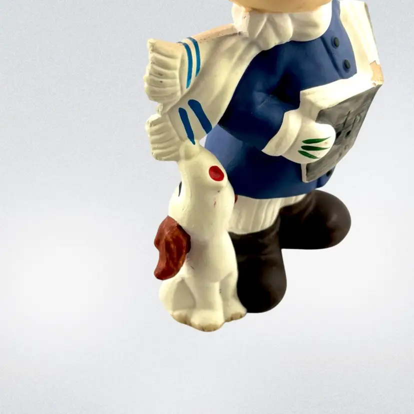 This is an adorable piece a boy with his dog. There are no chips or cracks just some paint missing off the top of his carol book.