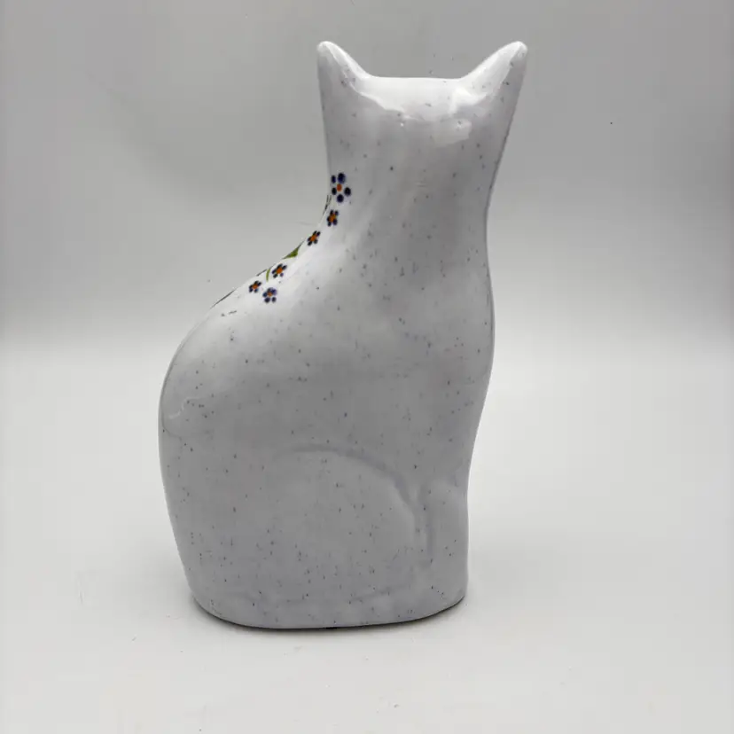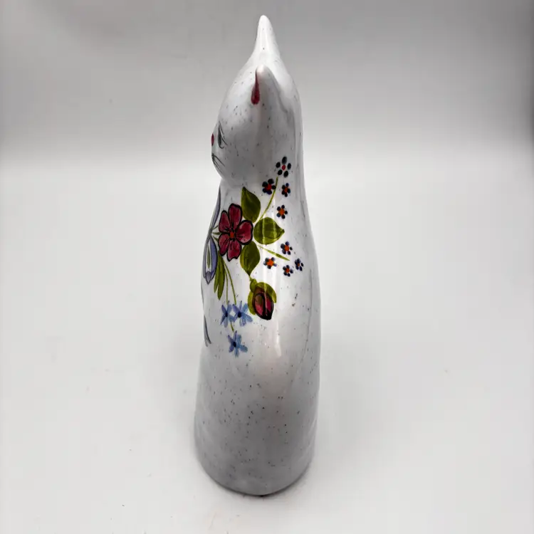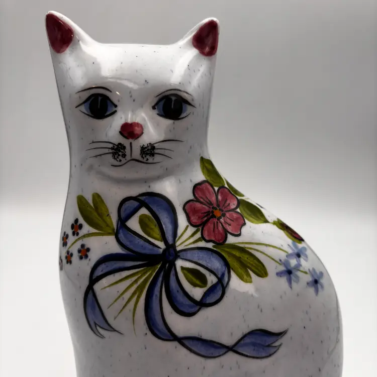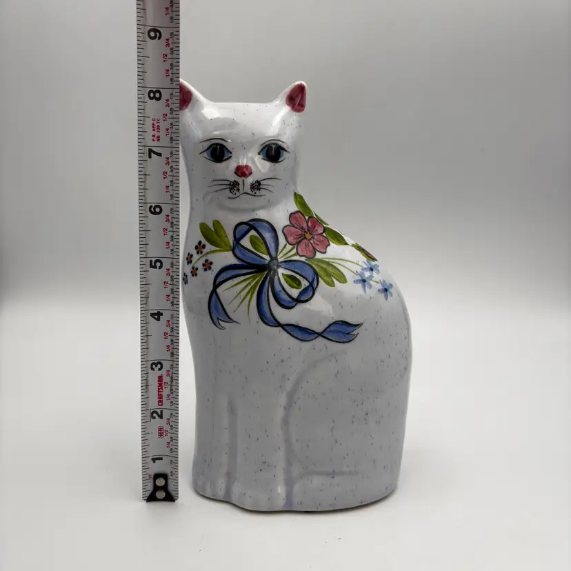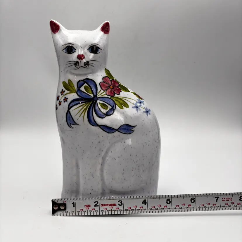 For sale is a Vintage Ceramic Cat Figure Hand Painted Blue Ribbon N.S. Gustin Co. 8in Tall
