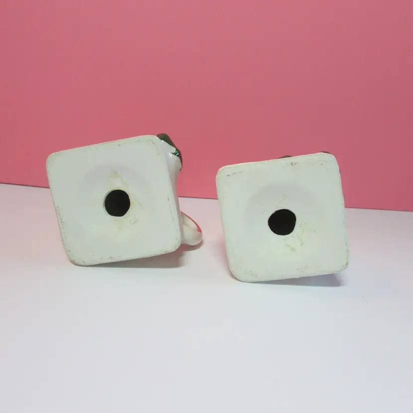 This lovely set has some wear, but still a nice set to display. Each is about 4 1/2" tall and missing their stoppers. This is shipped from a smoke free home. Thanks for looking!