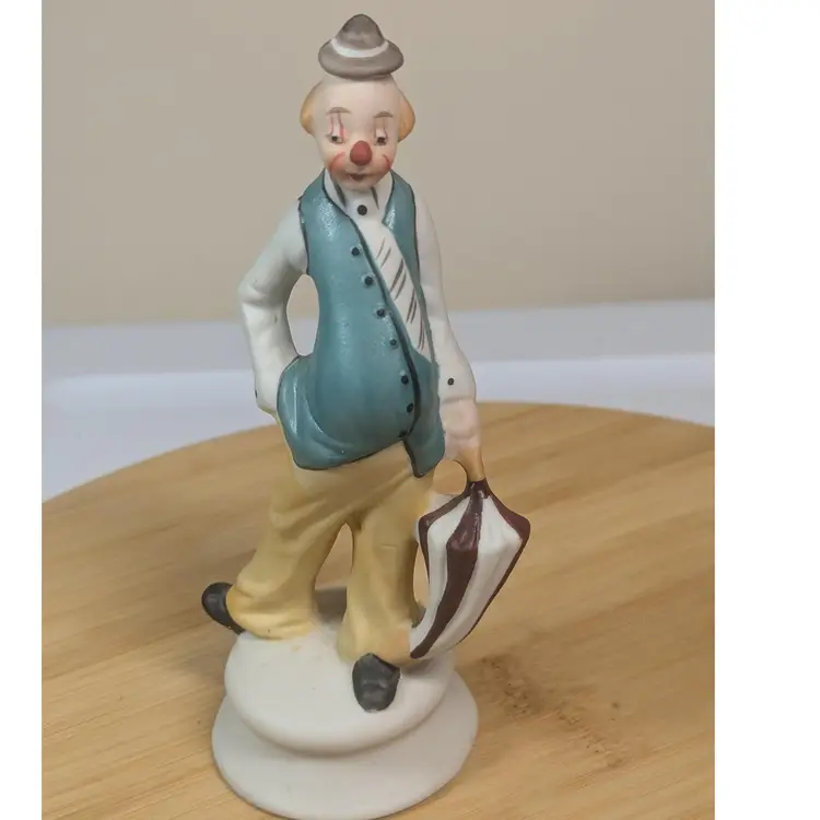Vintage Ceramic Clown with Umbrella, in good overall condition.