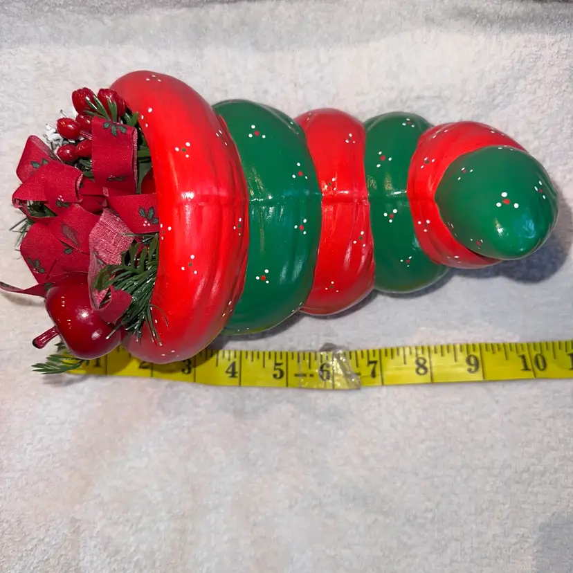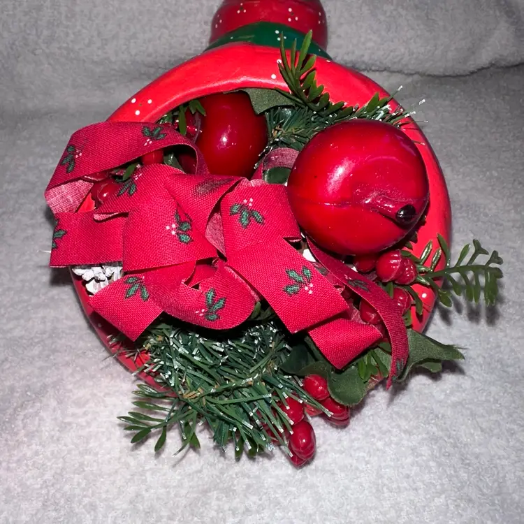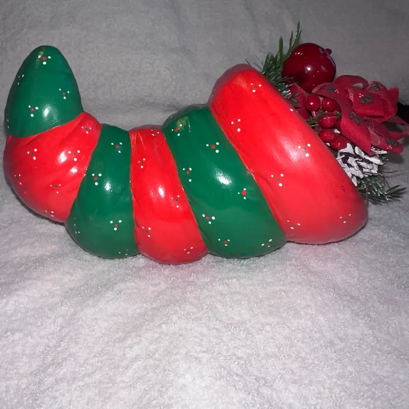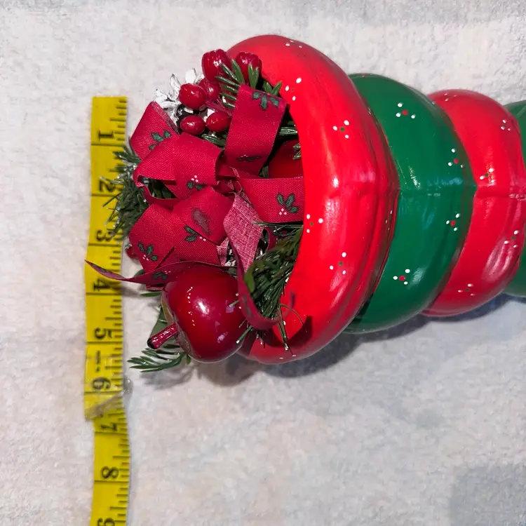 Vintage Ceramic Cornucopia Christmas Theme & Colors Table Centerpiece. Hand Painted And Made. Adorable Cornucopia Colored In Red And Green Paint With Christmas Floral/Ribbon At End Of Piece. Makes A Great Christmas Table Centerpiece. No Chips, Cracks Or Repairs. Smoke Free Home. #vintage #Retro #tablecenterpiece #cornucopia #Christmas #holidaydecor #christmasdecor
