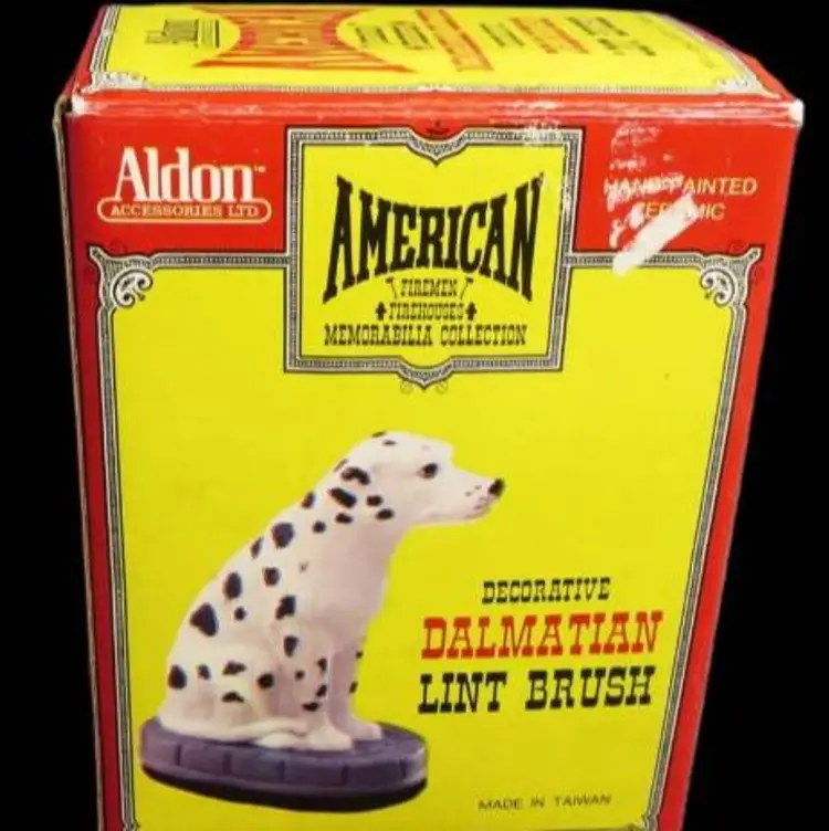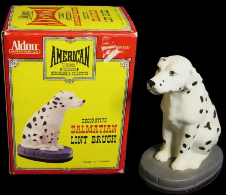 Vintage ceramic dalmatian dog lint brush, new old stock. From Taiwan in 1988.