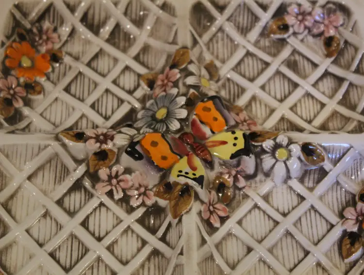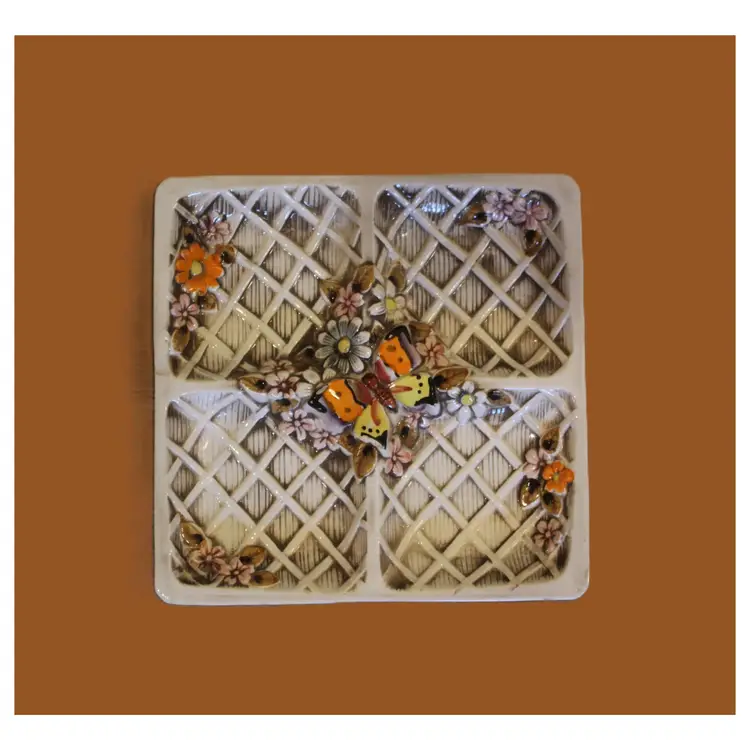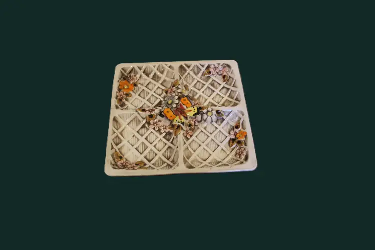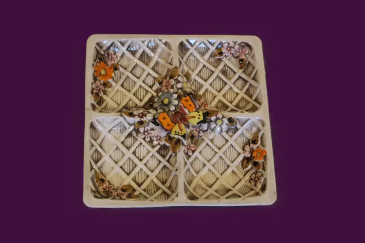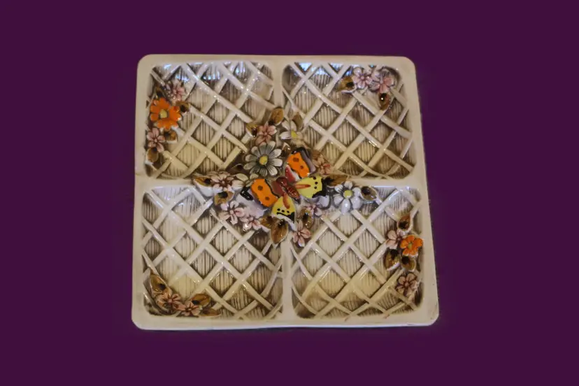 Vintage ceramic divided serving dish featuring a charming butterfly and floral design. Perfect for entertaining or as a decorative piece. Despite its age, this lovely tray is in good vintage condition, showcasing a few signs of wear and a small chip on the side, still preserving its vintage charm. ~*~ ♥