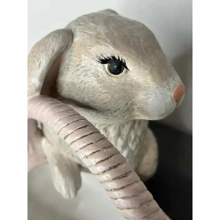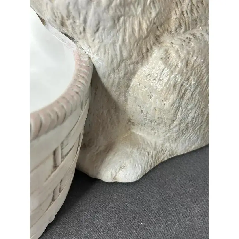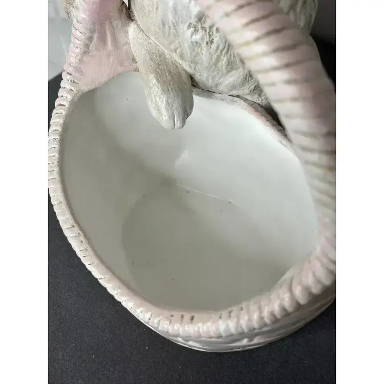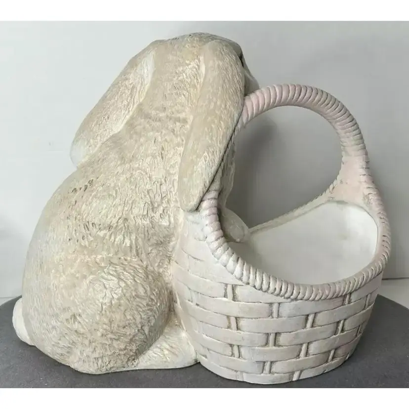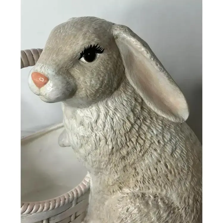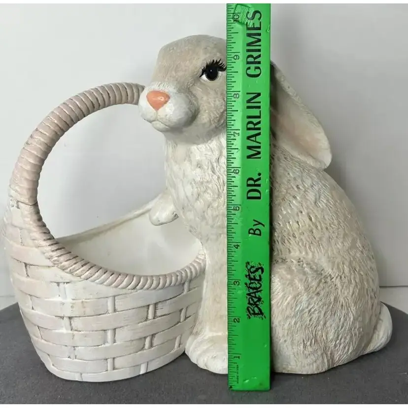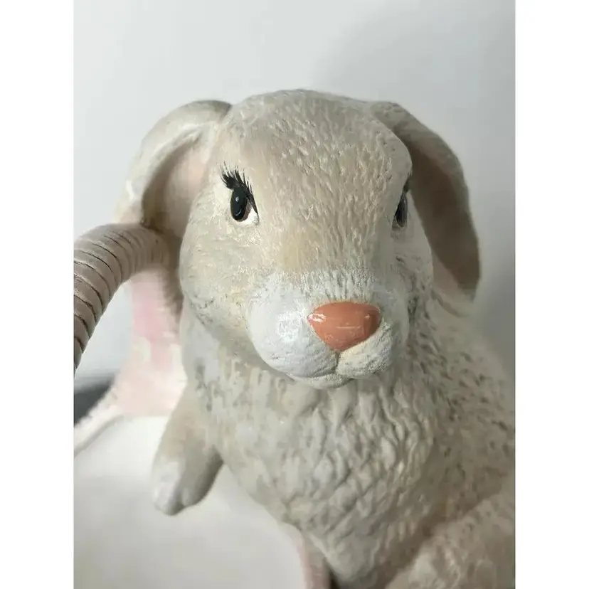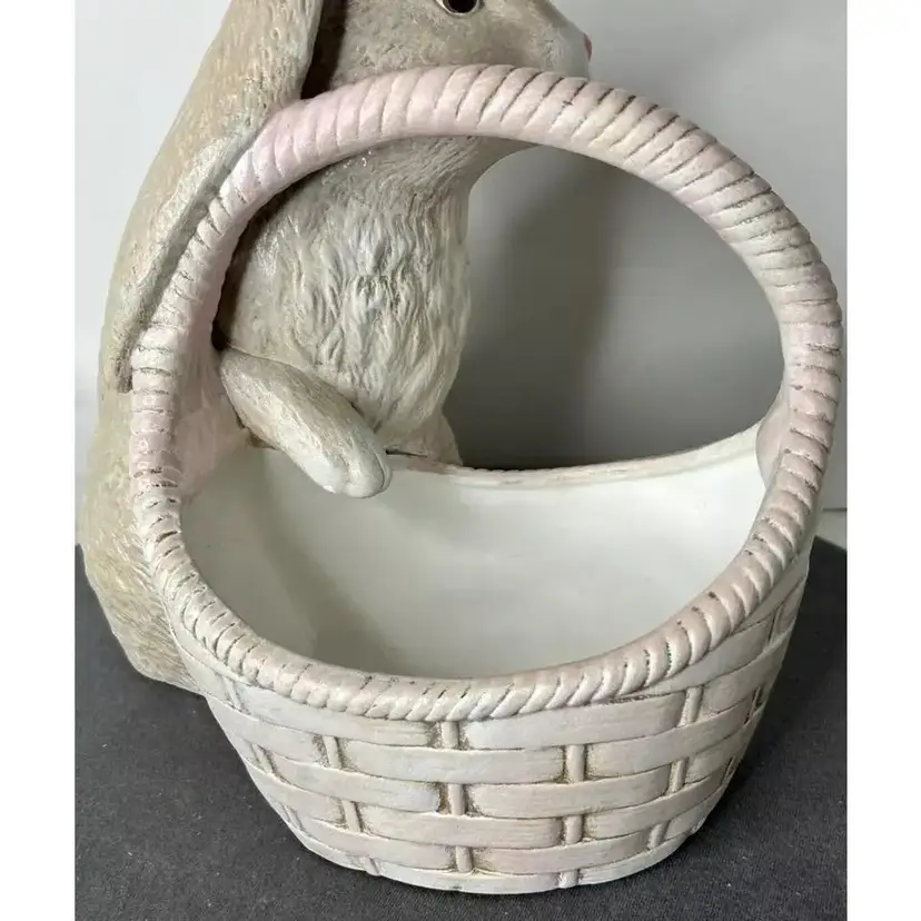 Vintage Ceramic Easter Bunny Rabbit with Basket Hand Painted Scioto Mold (c) 1993, this is a beautiful piece that can be displayed inside or outside during Easter, all throughout the Spring or Summer season. This is a piece that you can use as a planter or for a catchall at your front door during Easter or added as a centerpiece to your Easter tablescape. The possibilities for this piece are endless. This ceramic Easter Bunny Rabbit with basket piece measures 9.5" inches tall and 10" inches wide. It is a handmade collectible item, showcasing detailed craftsmanship and nostalgic charm. Vintage Ceramic Easter Bunny Rabbit with Basket Hand Painted Scioto Mold (c) 1993 is in excellent vintage pre-owned condition, with NO chips, cracks or repairs. Please review all pictures for proper assessment of its excellent vintage pe-owned condition.