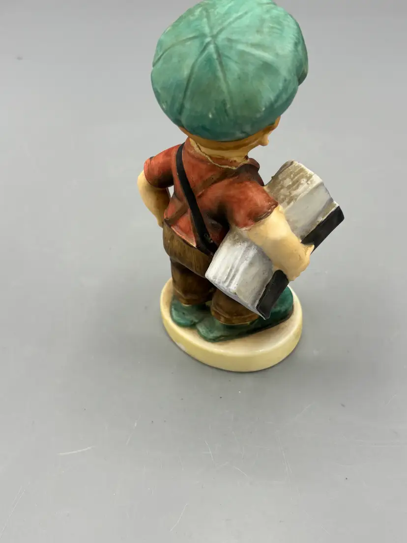 Charming vintage ceramic figure depicting a newsboy, a nostalgic piece capturing mid-century character. This collectible has been professionally re-glued for stability. Measures 5½ inches tall by 4 inches wide, making it an ideal display piece for shelves or curio cabinets. A delightful addition to any vintage or Americana collection. The head has been re glued.