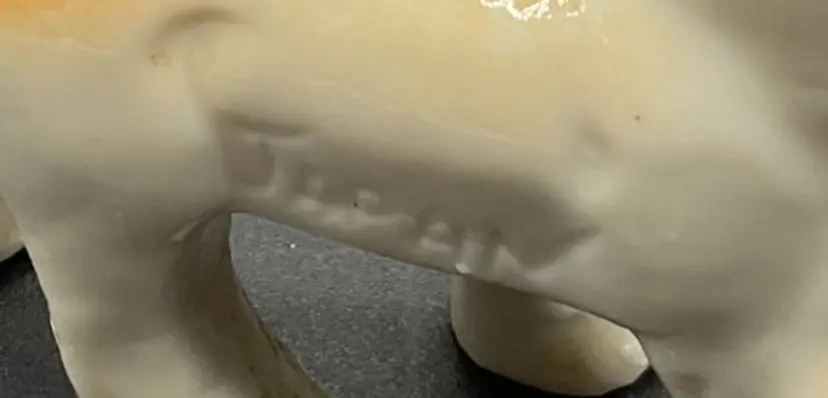 • Includes mother dog and four puppies • Hand-painted ceramic • Chain-connected design • Vintage Japan marking