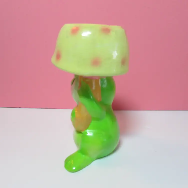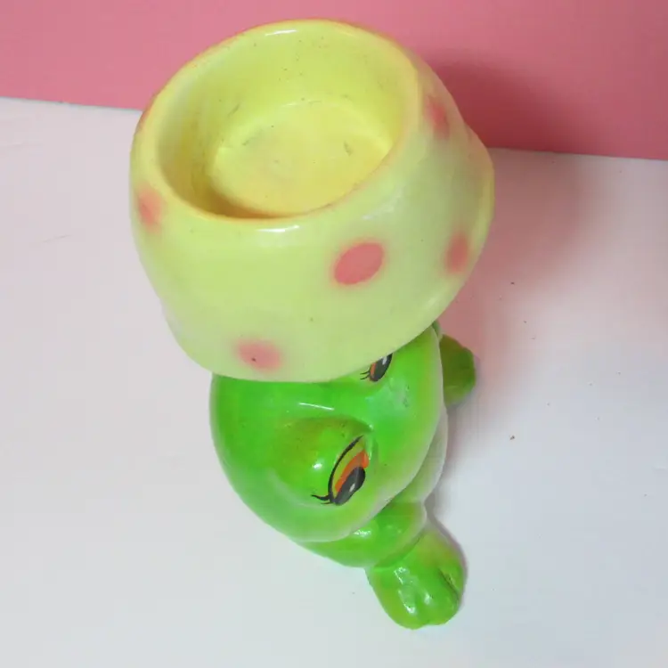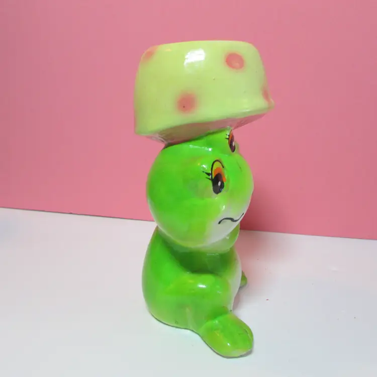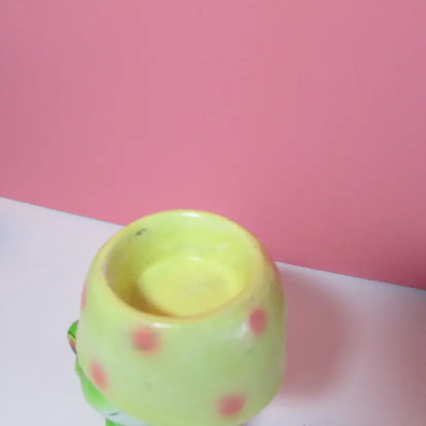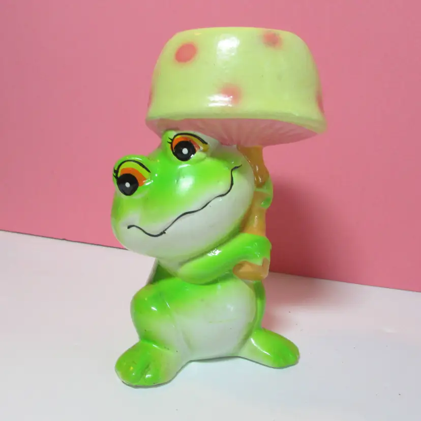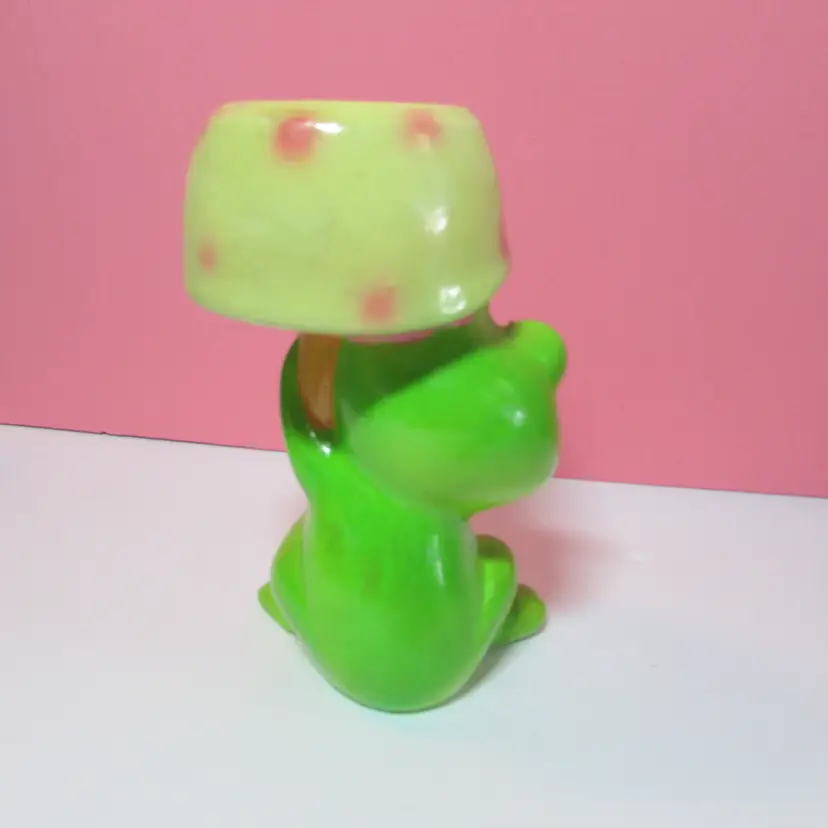 This adorable frog has some wear and scuffs, still a fun piece to use and display. It is about 5 1/2" tall. This is shipped from a smoke free home. Thanks for looking!