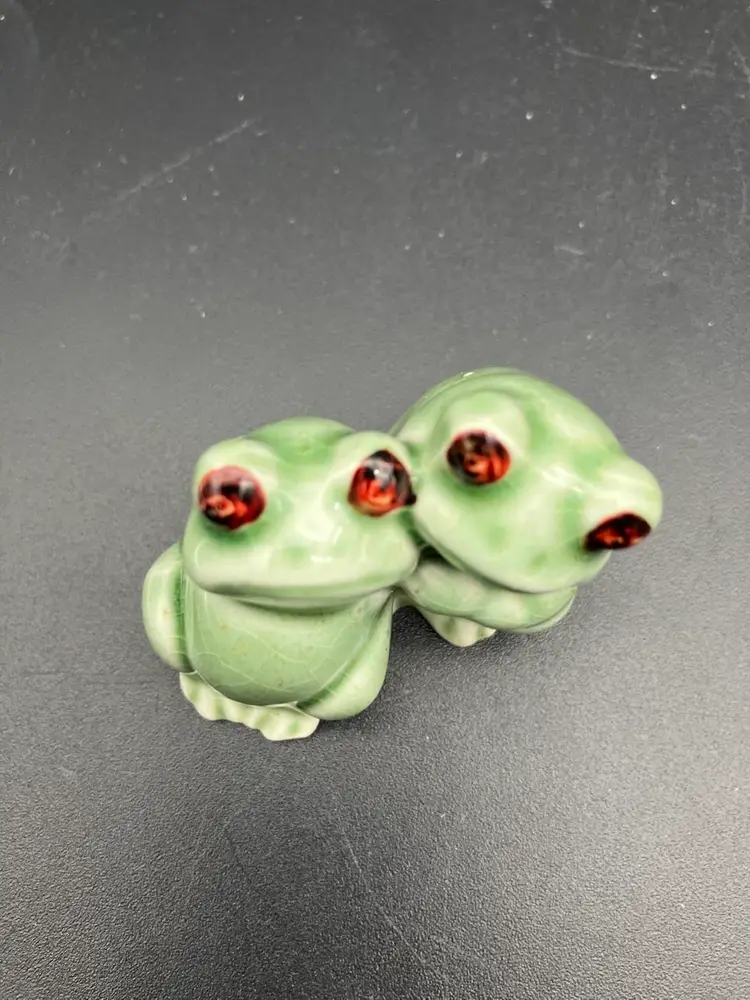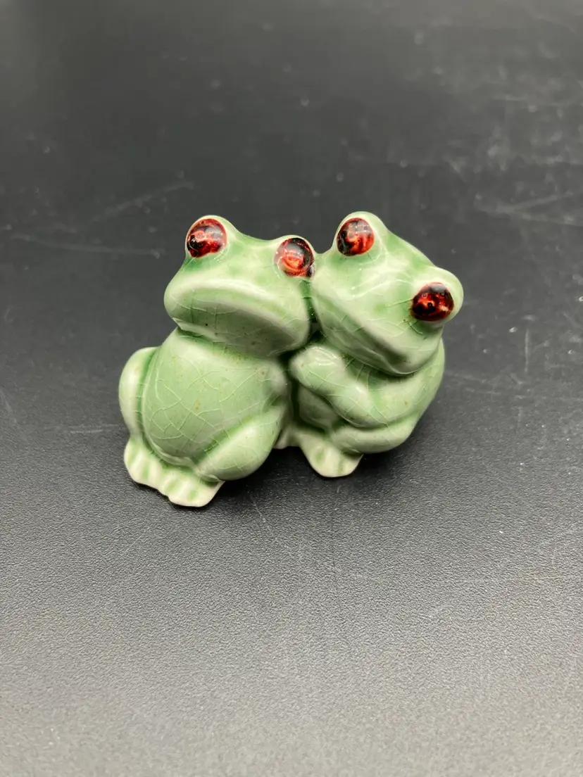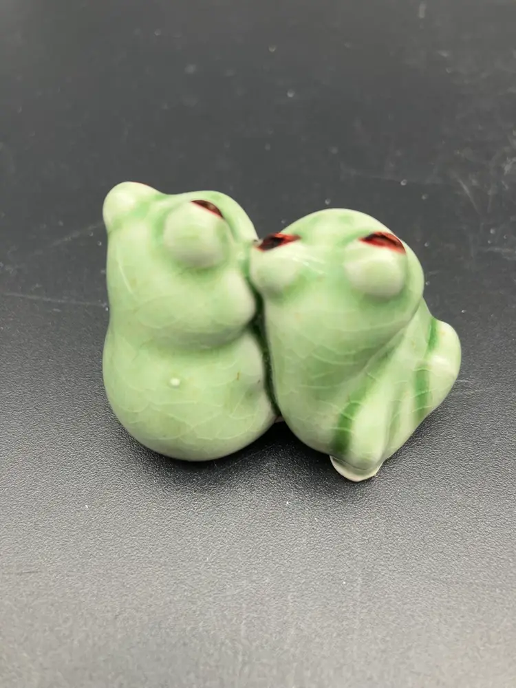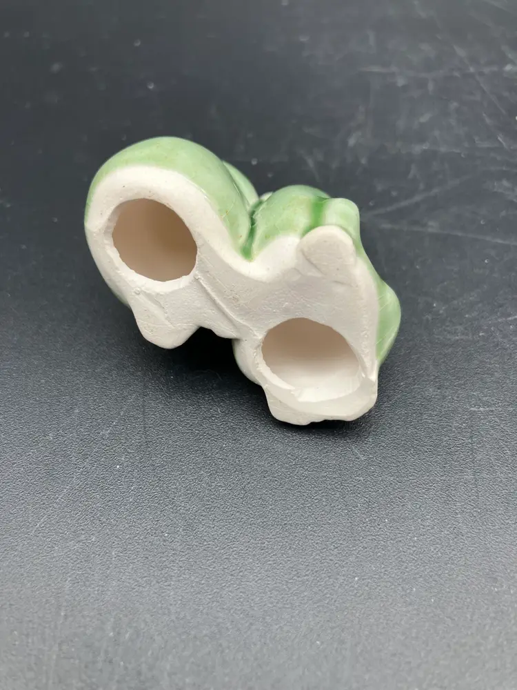 Measures approx 2” x 1.25” x 1.5”. Great condition. One little bubble in the glaze and glaze is crazed throughout. So cute!