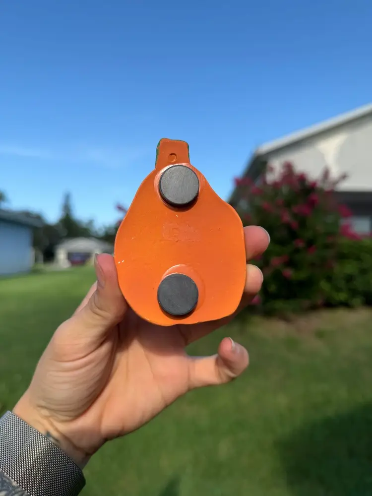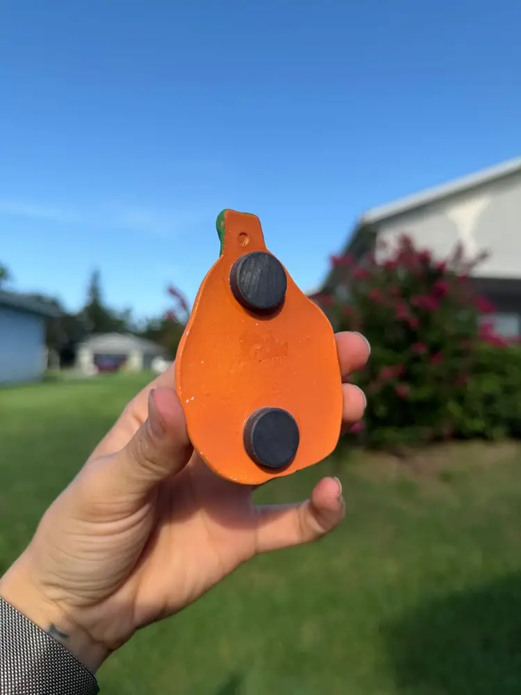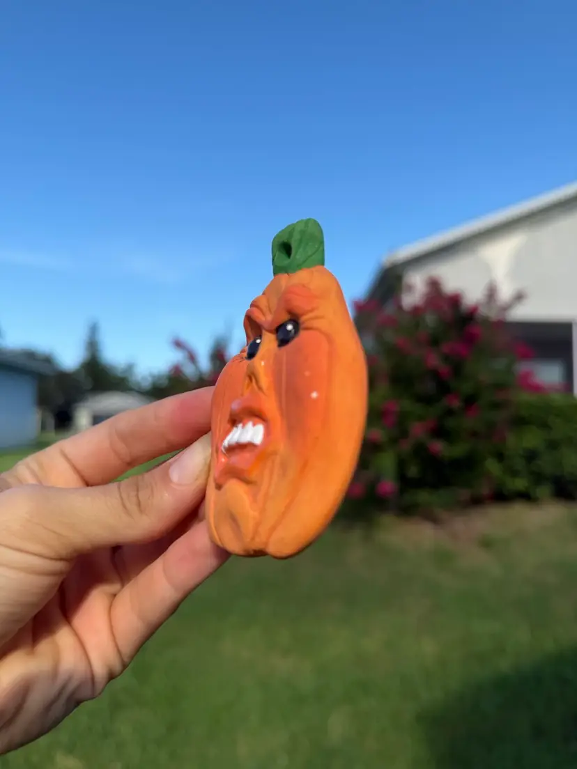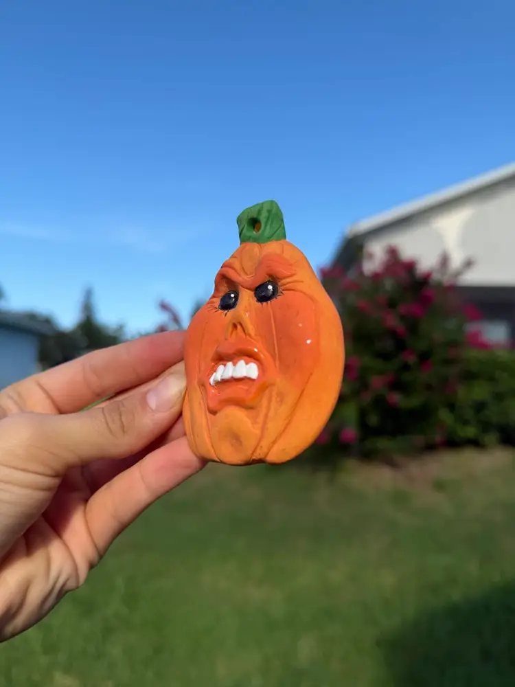The coolest funky pumpkin face magnet ! He is super creepy, in good preloved condition has a couple tiny flea bites.