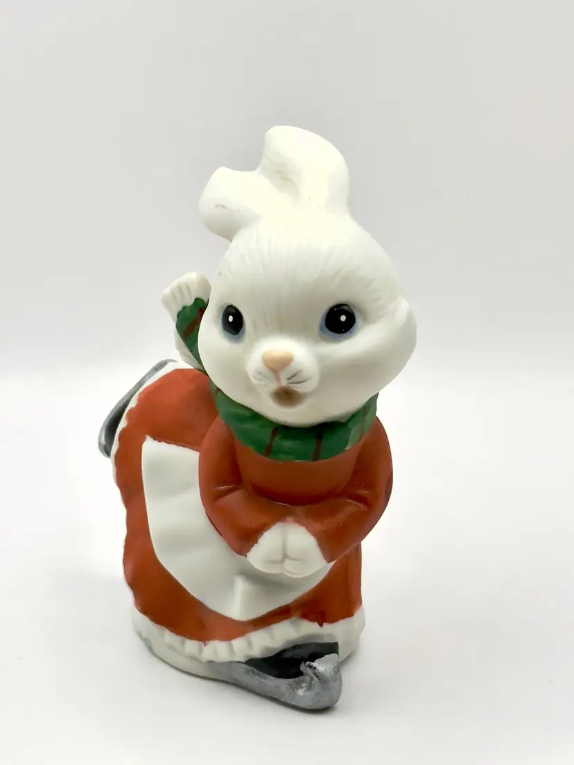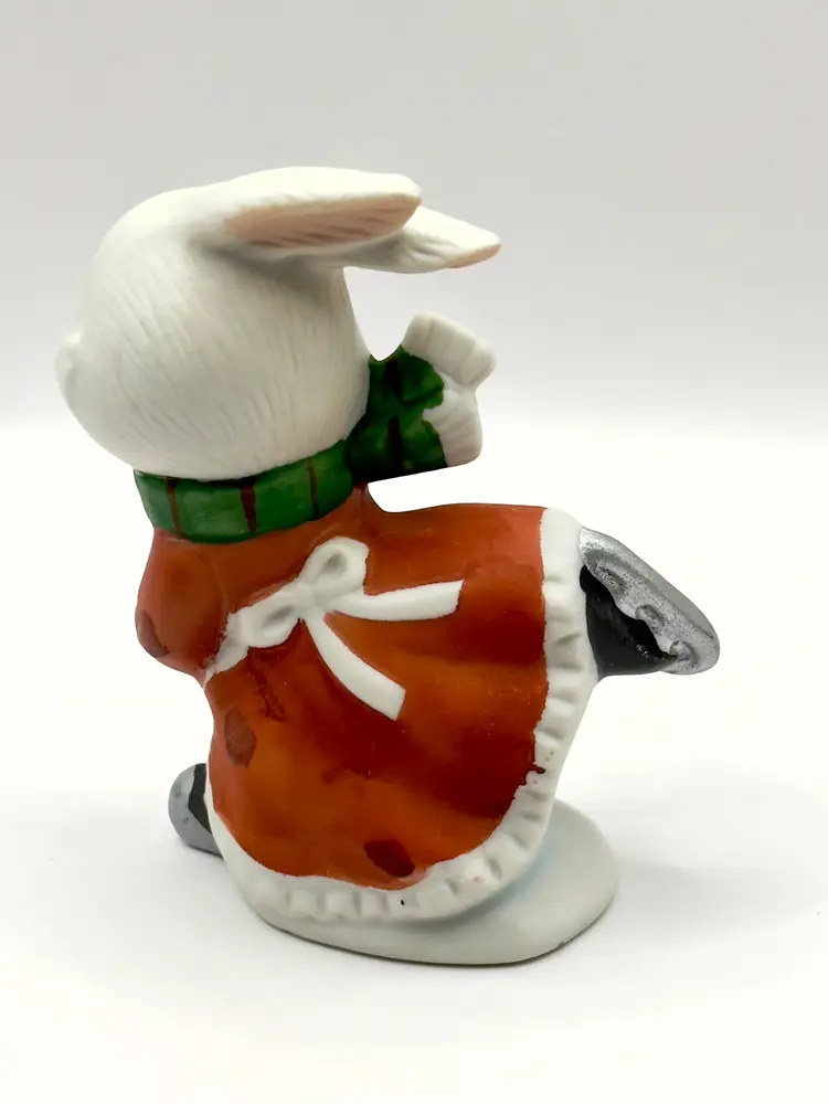 This charming vintage ceramic bunny figurine is dressed for winter and ready to skate into your heart. Hand-painted with delightful details, this piece is perfect for adding a touch of whimsy to your winter decor. Ideal for collectors or as a unique gift. Excellent condition with no chips or cracks. Measures 2x4x2.5 inches. Weighs 5oz.