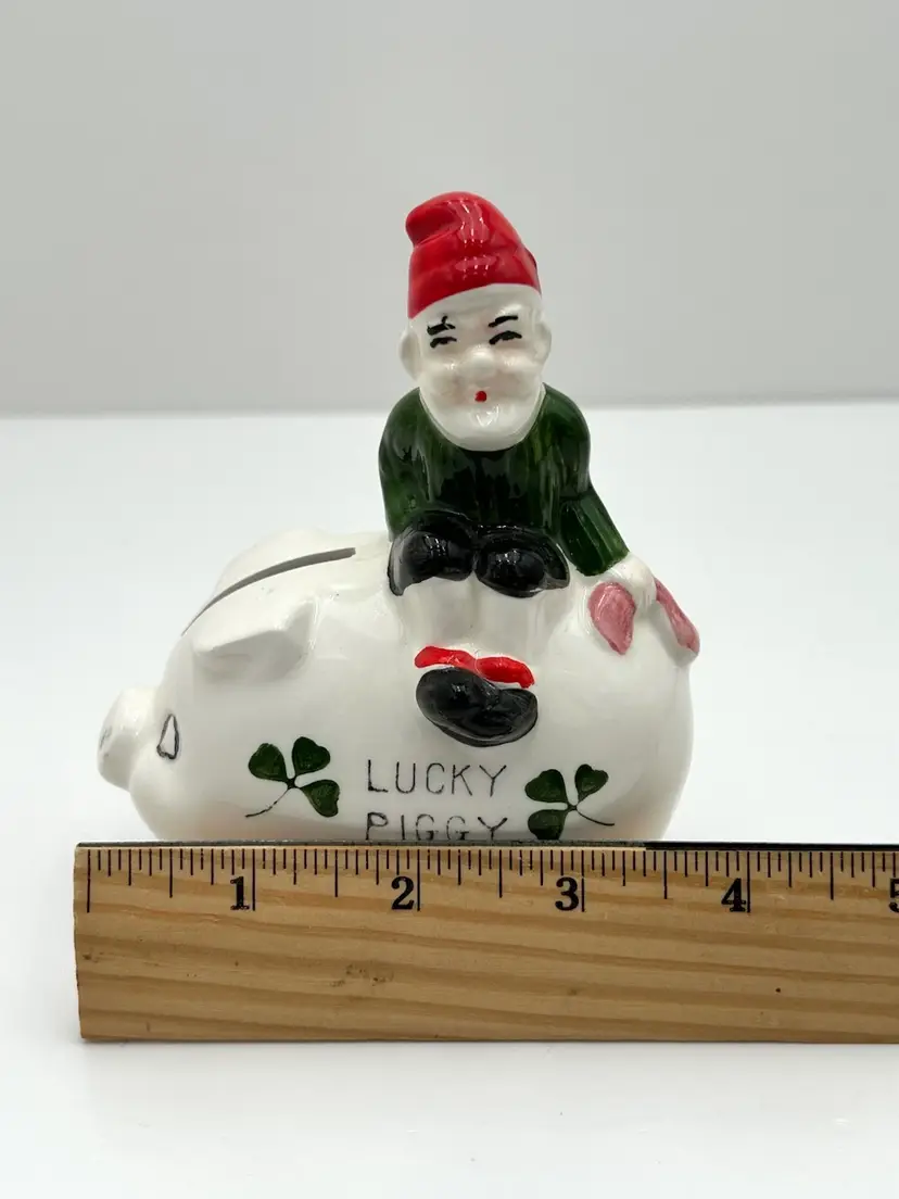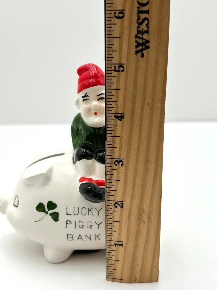 As shown 5 inches tall and 4 inches long No chips or cracks and only minor paint wear
