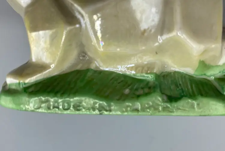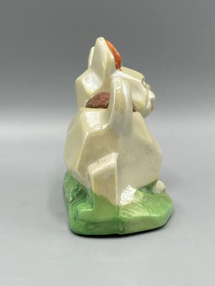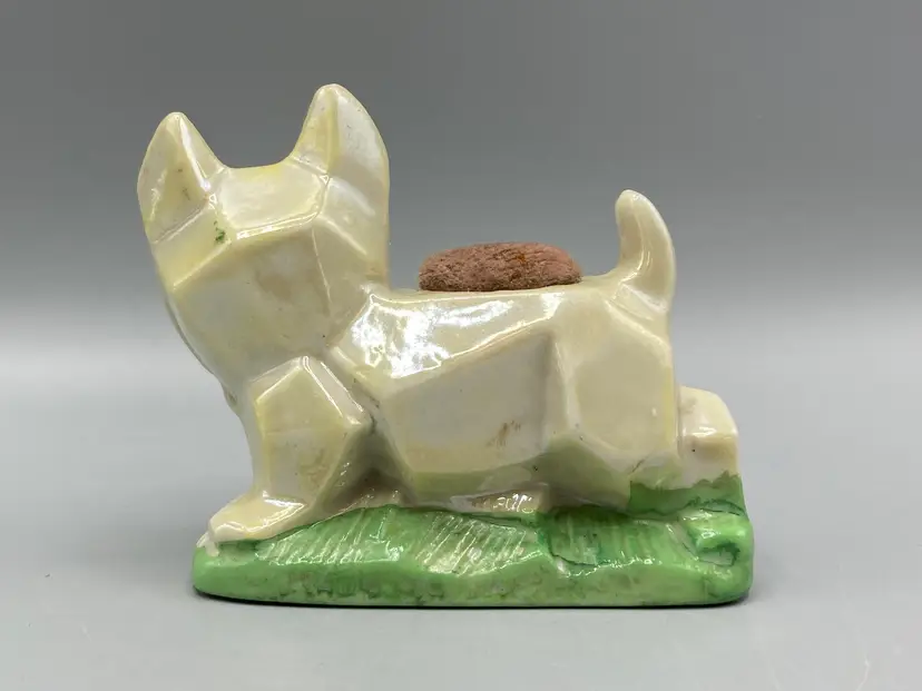 This pin cushion is in good condition, it does have some minor paint loss and a couple manufacturing defects, which are seen in the pictures. (one of face and one on back of head). It measures approximately 2 1/2" tall x 3" x 1 1/2".