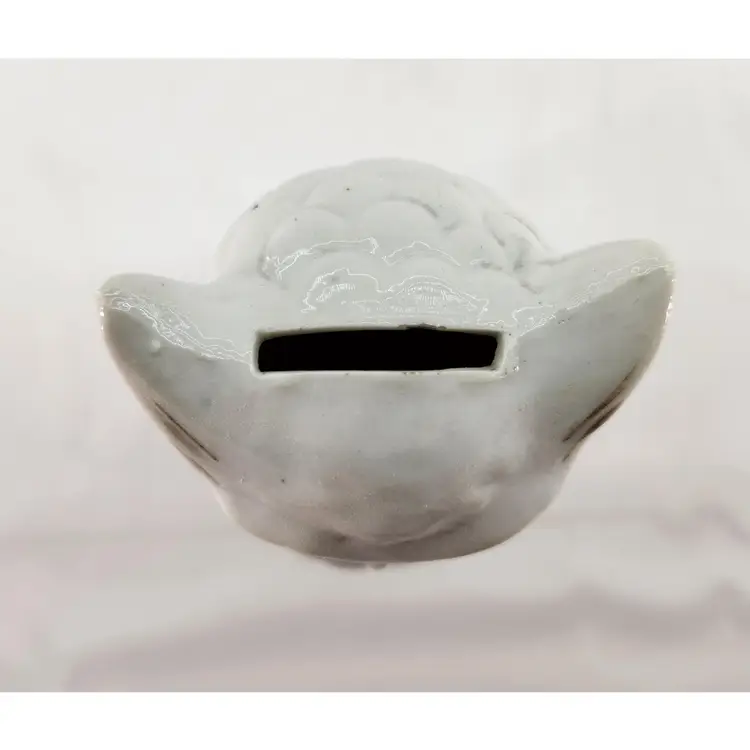 This sweet bank has no chips, cracks or flea bites. There are some marks from age and from.an old sticker or label on the back. I'm going to continue trying to.get that off, but it's being stubborn.