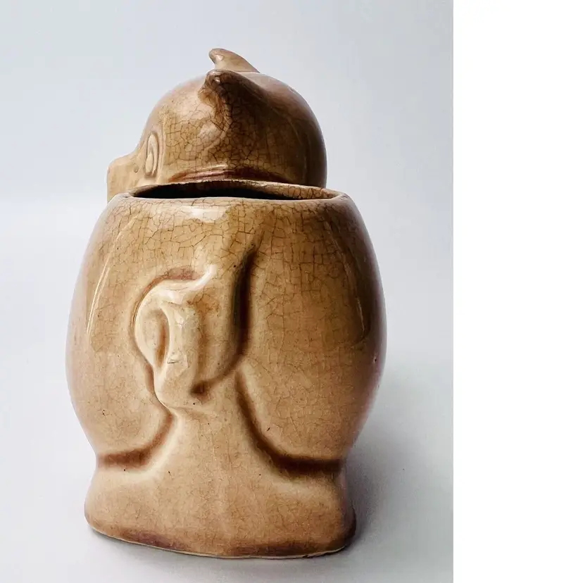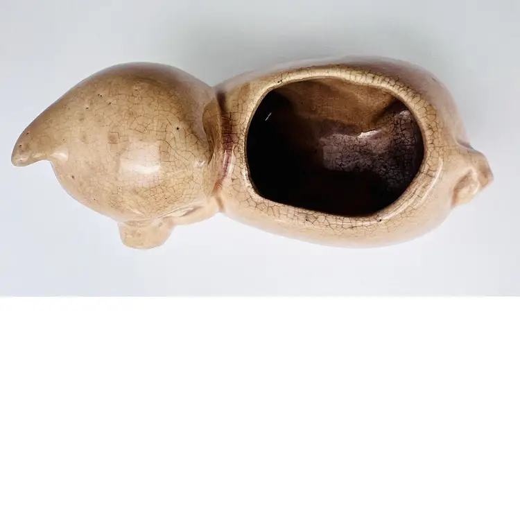 This item is in fair vintage condition. Heavy crazing and staining. No chips or cracks. See all images for details. Measures 5 1/2" long by 2 1/2" wide by 4 1/4" tall Weighs 10oz