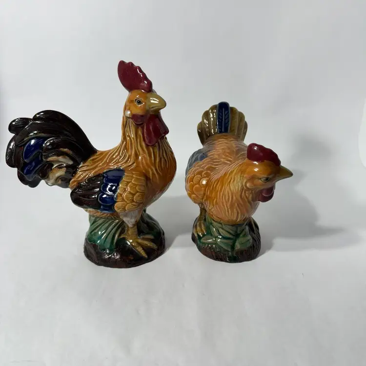 Pair of Rooster and Hen in pre-owned excellent condition, this pair make a beautiful display.