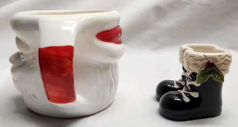 1950-60's, Santa mug "Open Eyes" style, Japan Santa Boots can be either a toothpick or matchstick holder